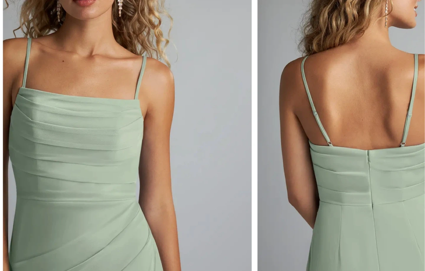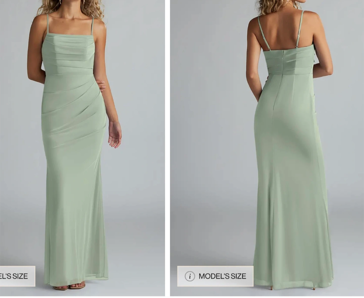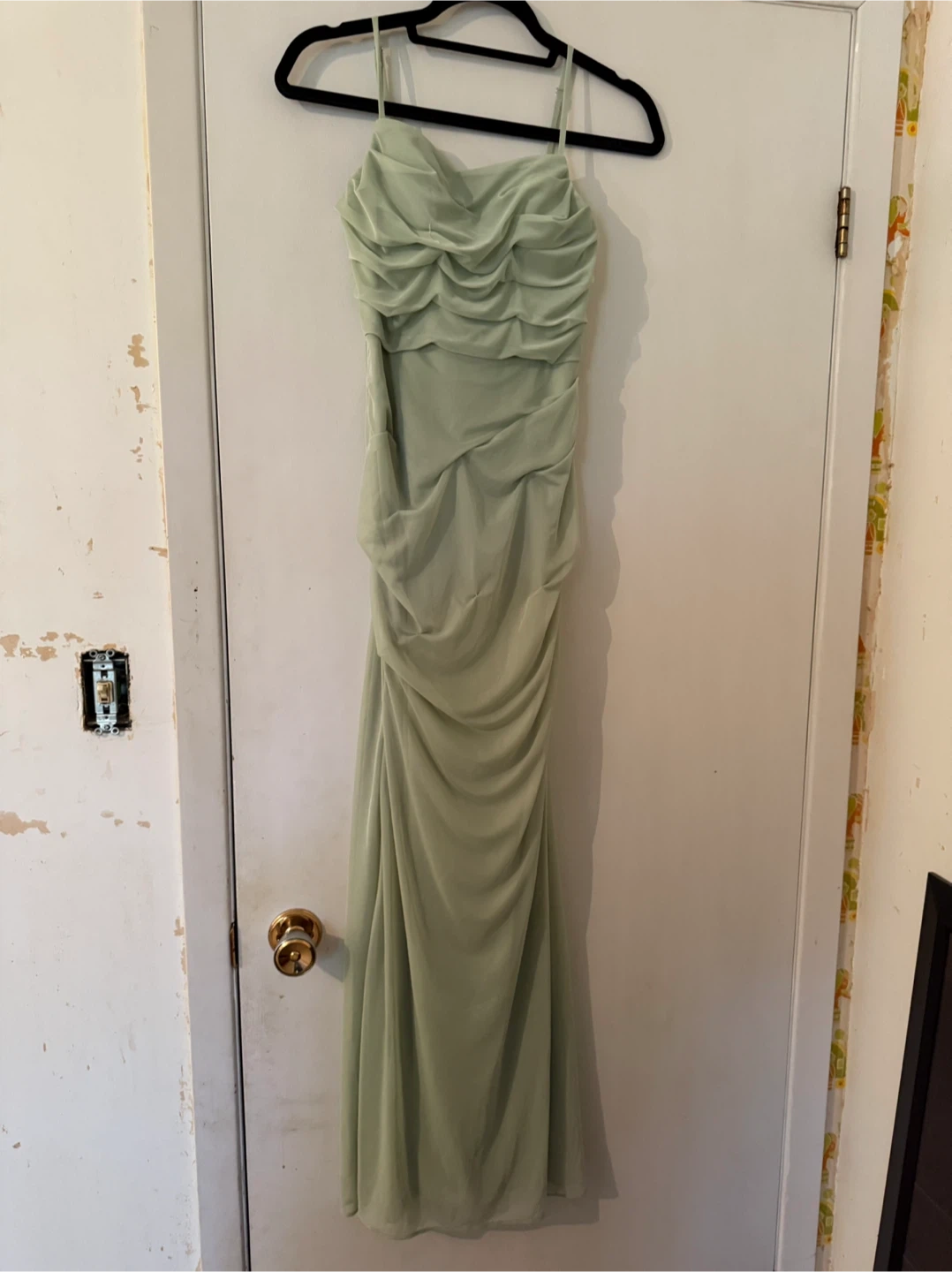 Selling a lovely sage green bridesmaid dress from Azazie! It's in great condition and ready for its next event. The dress features a flattering silhouette and is perfect for weddings or other special occasions. It's a beautiful colour!