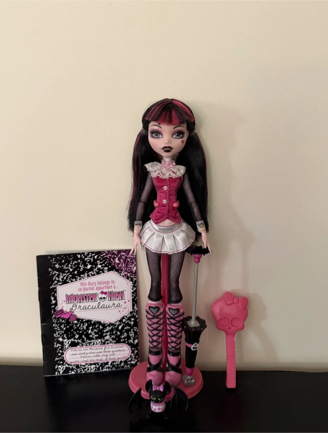 Original owner, not creeproduction, 2010 Draculaura with gold elastics. No loose hips or joints, was displayed only. Comes with everything shown. From a smoke free pet friendly home. No shipping. Pickup in Alliston. $250