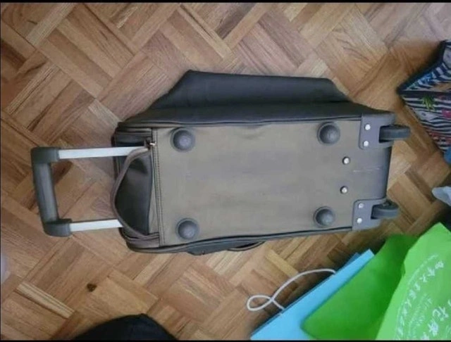 This is a used rolling suitcase in fair condition, perfect for travel. It features a retractable handle and wheels for easy transport, along with multiple compartments for organized packing. The exterior shows some signs of wear, but it is fully functional and ready for your next trip. Additional features include: Retractable handle, Rolling wheels, Multiple compartments. If this ad is up, the suitcase is still available!