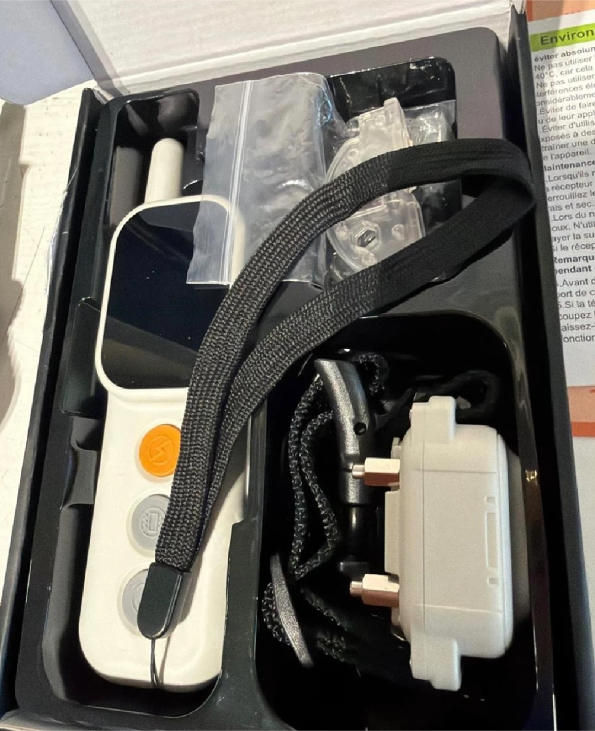 I'm selling a brand new, in-box dog training collar with a remote that boasts a 3300 ft range, perfect for outdoor training. This is a complete set, never been used, and ready to help you train your furry friend effectively.
