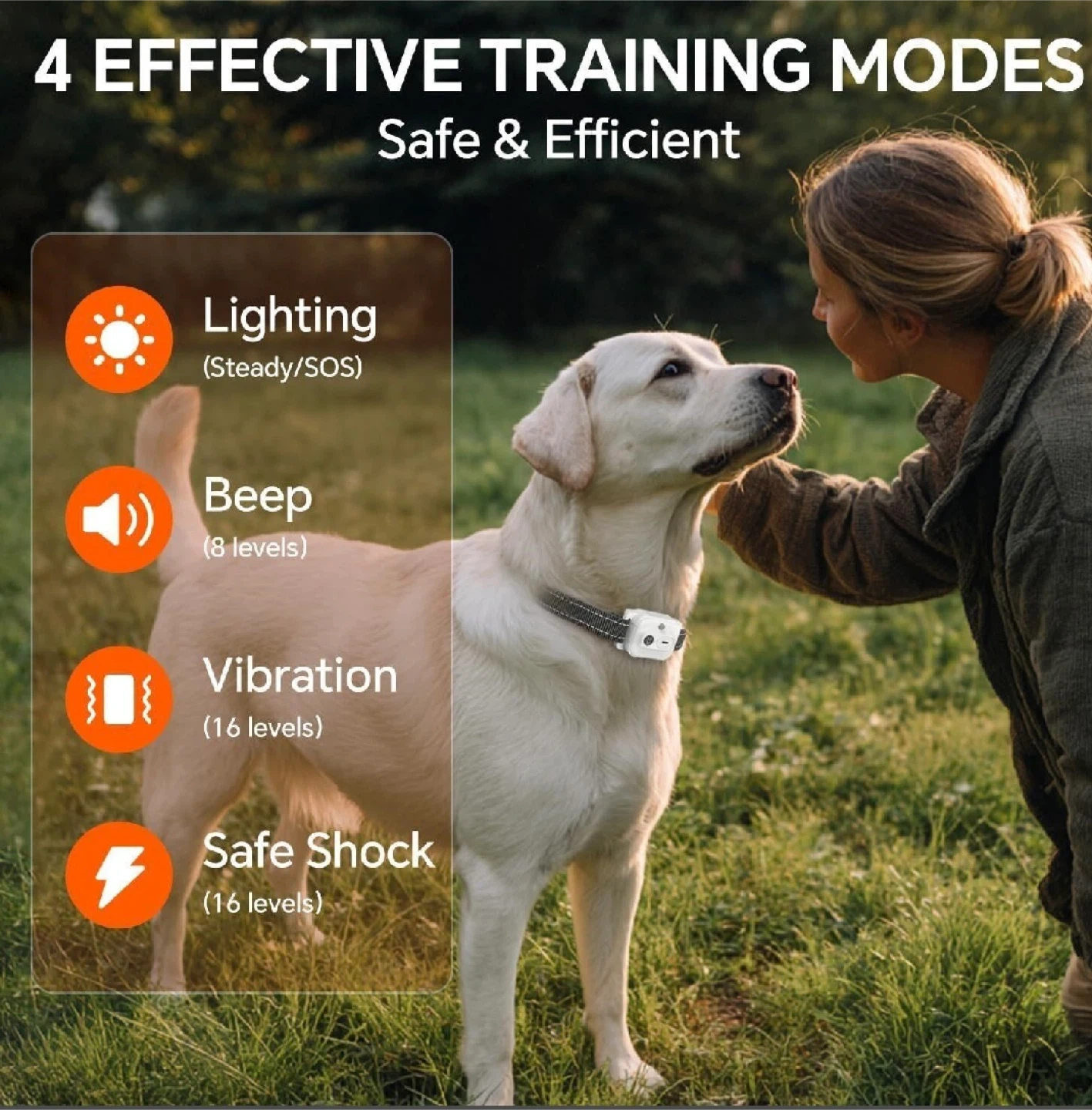 * Multiple training modes: beep, vibration, and safe shock