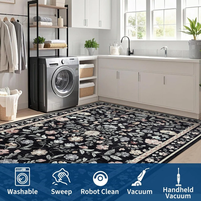 Upgrade your space with this elegant and easy-care 8x10 area rug featuring a timeless vintage floral pattern in black. Foldable and fully washable Soft low-pile texture Non-slip backing – stays in place Durable, non-shedding material Great for living room, office, playroom, bedroom New – open box ⚠️ PLEASE NOTE: Final sale – no returns, no warranty. Check and test on pickup. Available until sold.