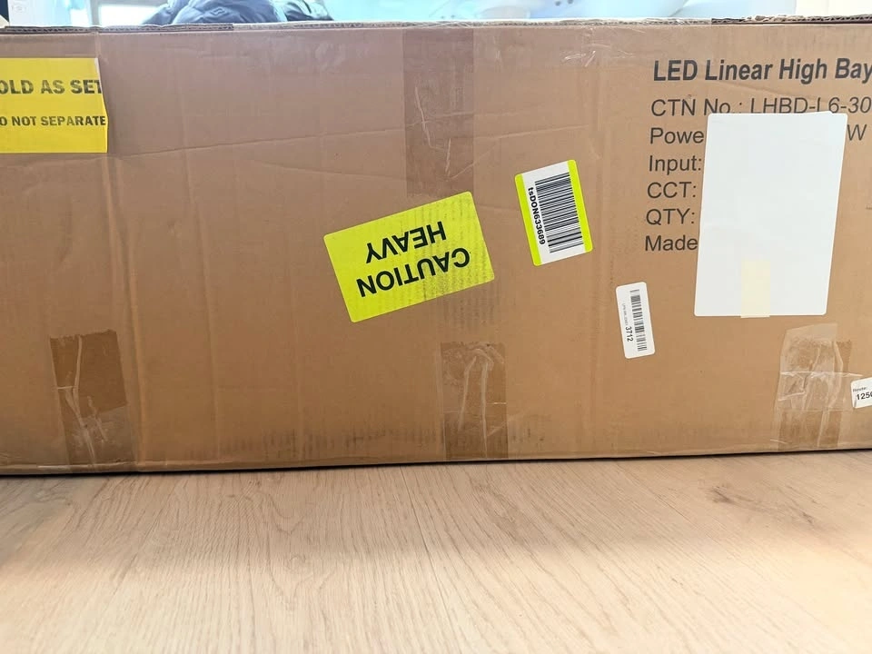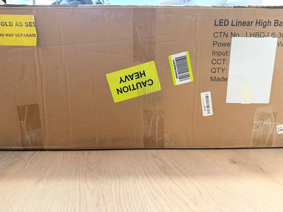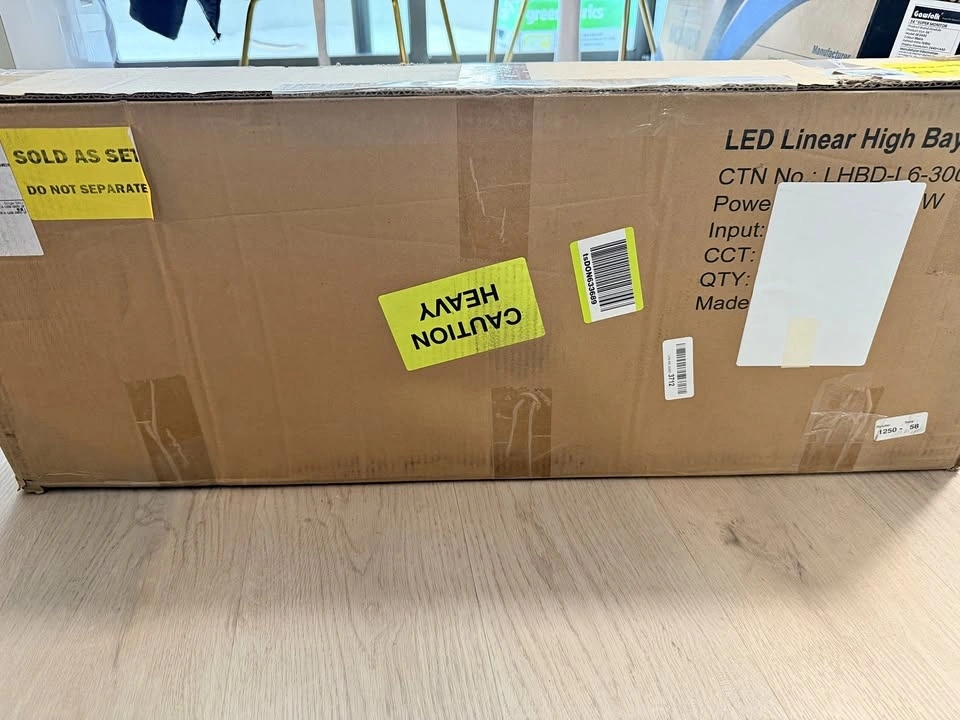 Brand new in box. This is a high-intensity light suitable for warehouses, shops, or any space with high ceilings. It provides excellent light output with a durable, industrial-grade design. Features a wide beam angle for comprehensive coverage and flicker-free lighting for a comfortable environment. It's an energy-efficient alternative to traditional metal halide lights.