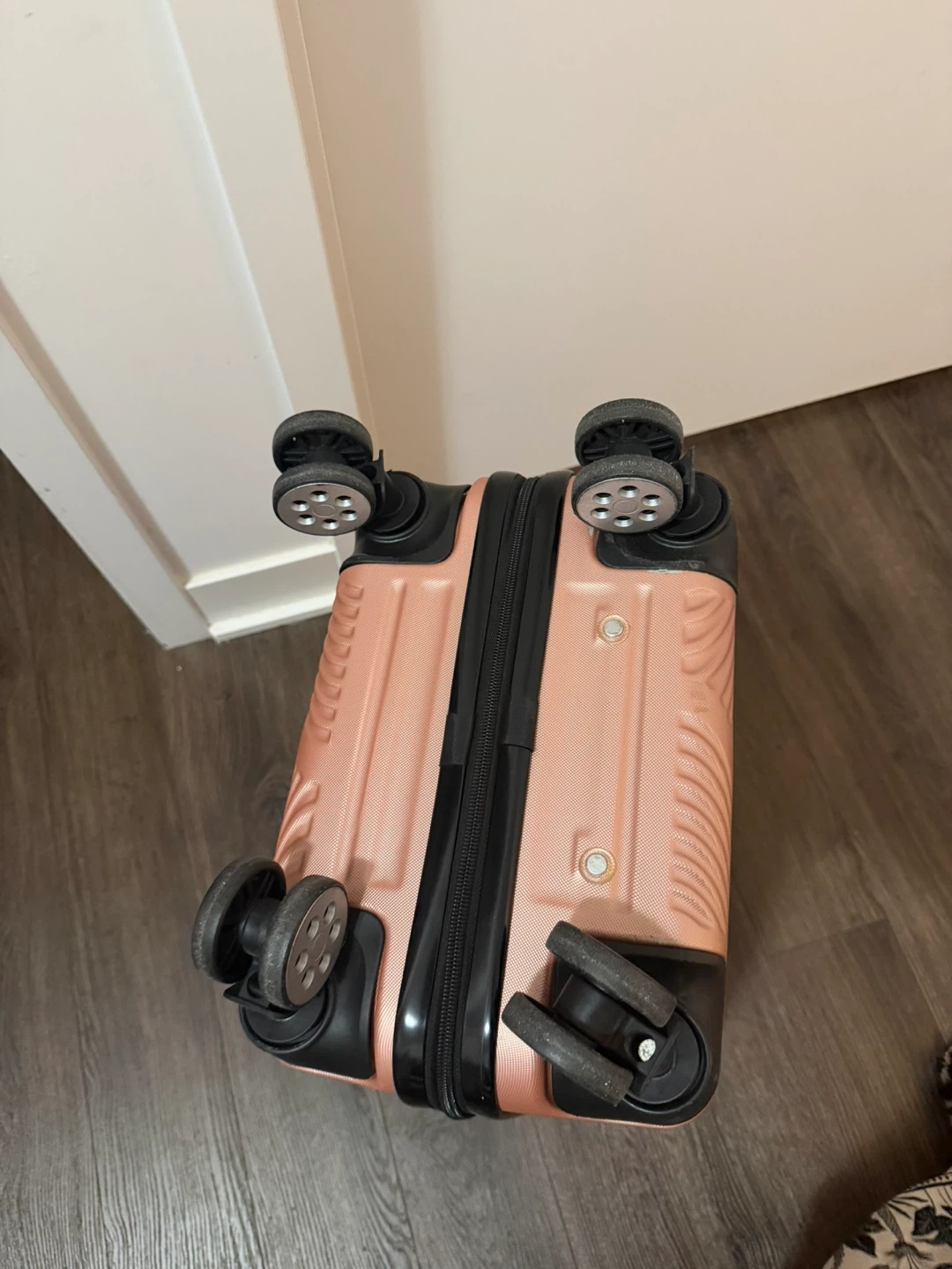 Free- a cute rose gold carry-on suitcase! It's in great shape and ready for your next trip. The wheels are all working but it’s not 365. You can only pull the carry-on. Received so many requests, but first come first serve