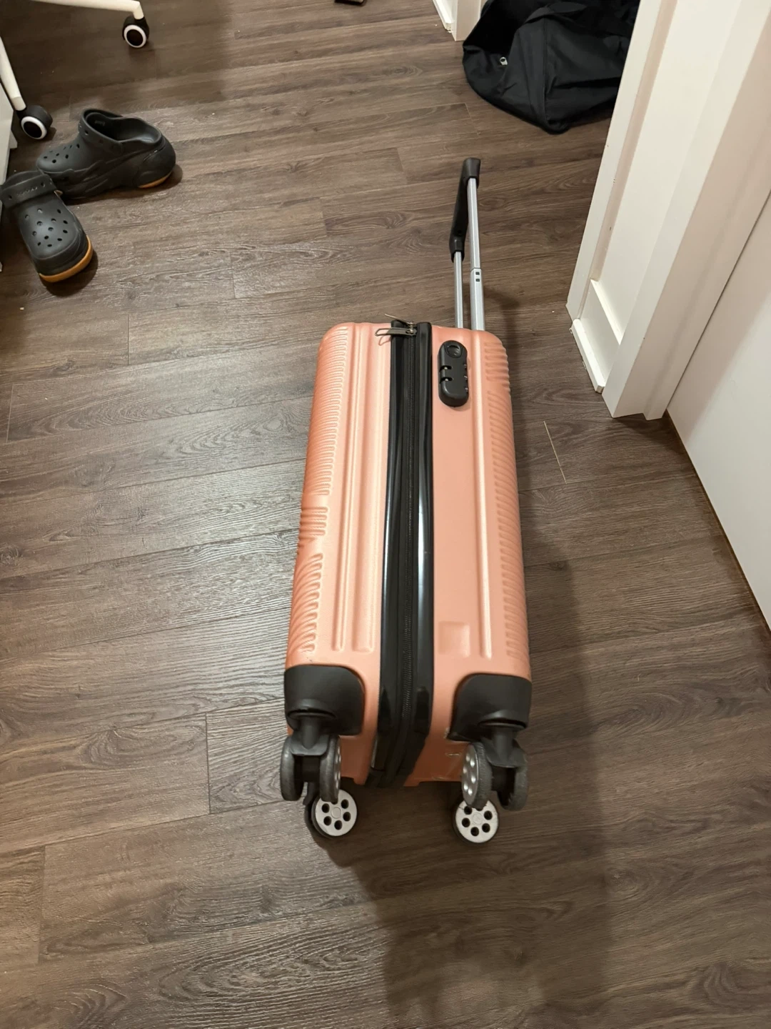 Free- a cute rose gold carry-on suitcase! It's in great shape and ready for your next trip. The wheels are all working but it’s not 365. You can only pull the carry-on. Received so many requests, but first come first serve