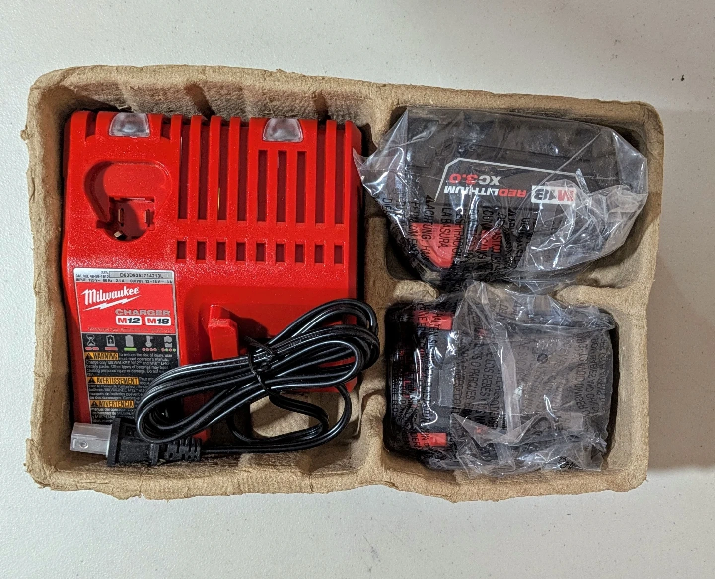 This Milwaukee M18 combo kit includes a cordless drill and an impact driver. It also comes with a charger and two XC 3.0 batteries. This set's great for various DIY and professional tasks!