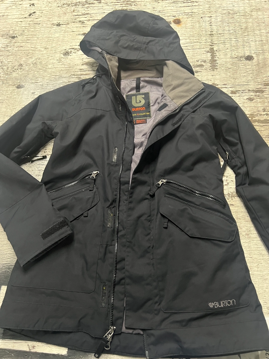 Selling a Burton women's jacket! It's a stylish and functional jacket perfect for staying warm and dry. It features a sleek design with multiple pockets and the Burton logo.