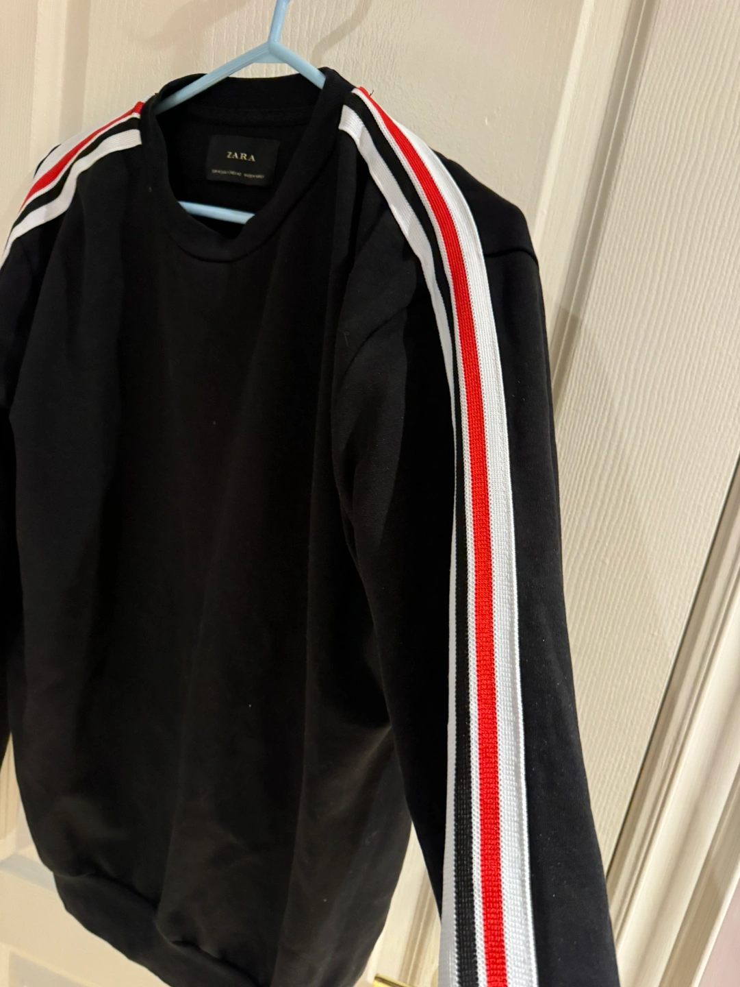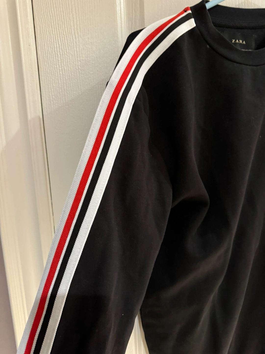 Zara top, white, black and red stripes going down from the neck to the bottom of the sleeve. Size medium