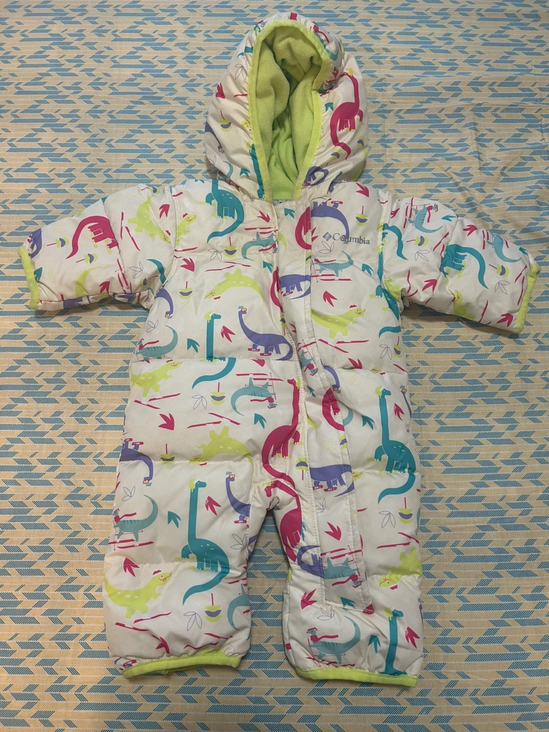Keep your little one cozy with this adorable Columbia snowsuit! It features a fun dinosaur print and a soft, warm lining. Perfect for babies aged 0-3 months
