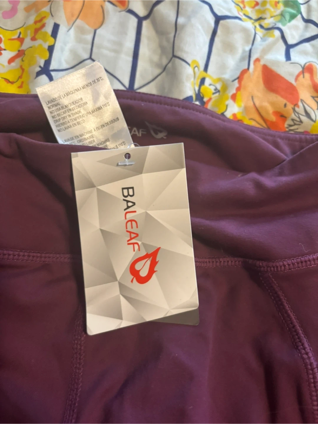 Selling a pair of BALEAF women's athletic leggings in a lovely burgundy colour! They are size small and in new condition . Perfect for workouts or just lounging around!