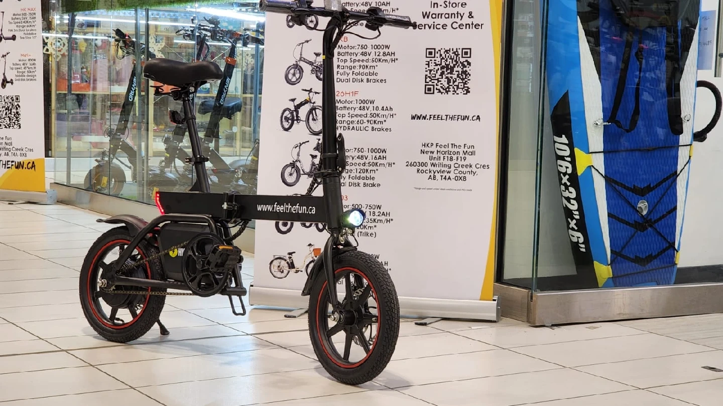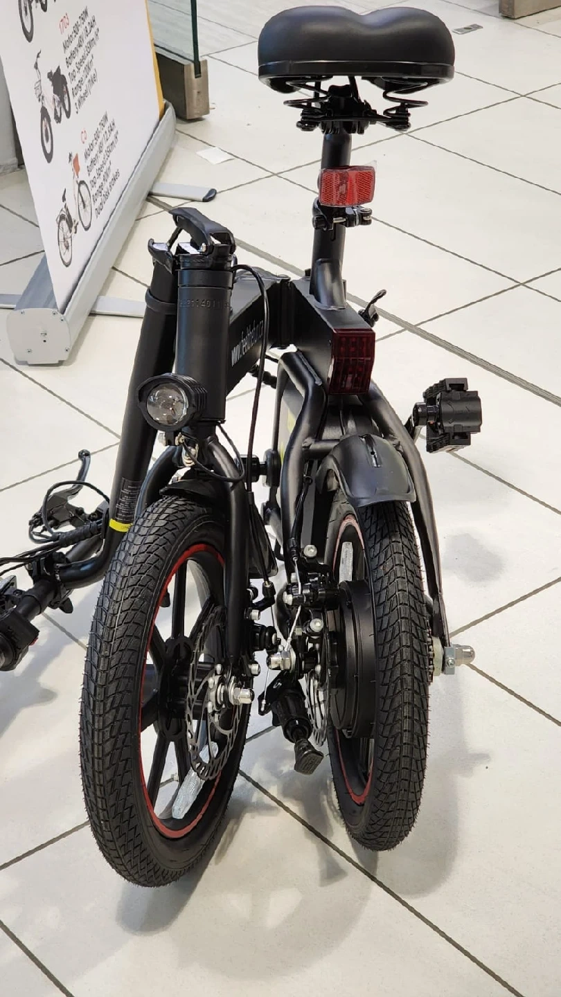 65B20 electric bike 350 watt BLDC motor Battary 6AH (216wa) top speed 25km/h Max range 30km Max load 120kg/264 lbs wheel size 14" Foldable yes front and rear lights yes front and rear disk brakes yes paddle assist yes fully foldable yes horn yes