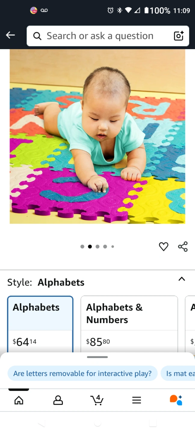 Alphabet foam floor mat. 26 interlocking tiles. Removable ABCs. Thick foam. Storage pouch included. For newborns, toddlers, and kids. 0 months+