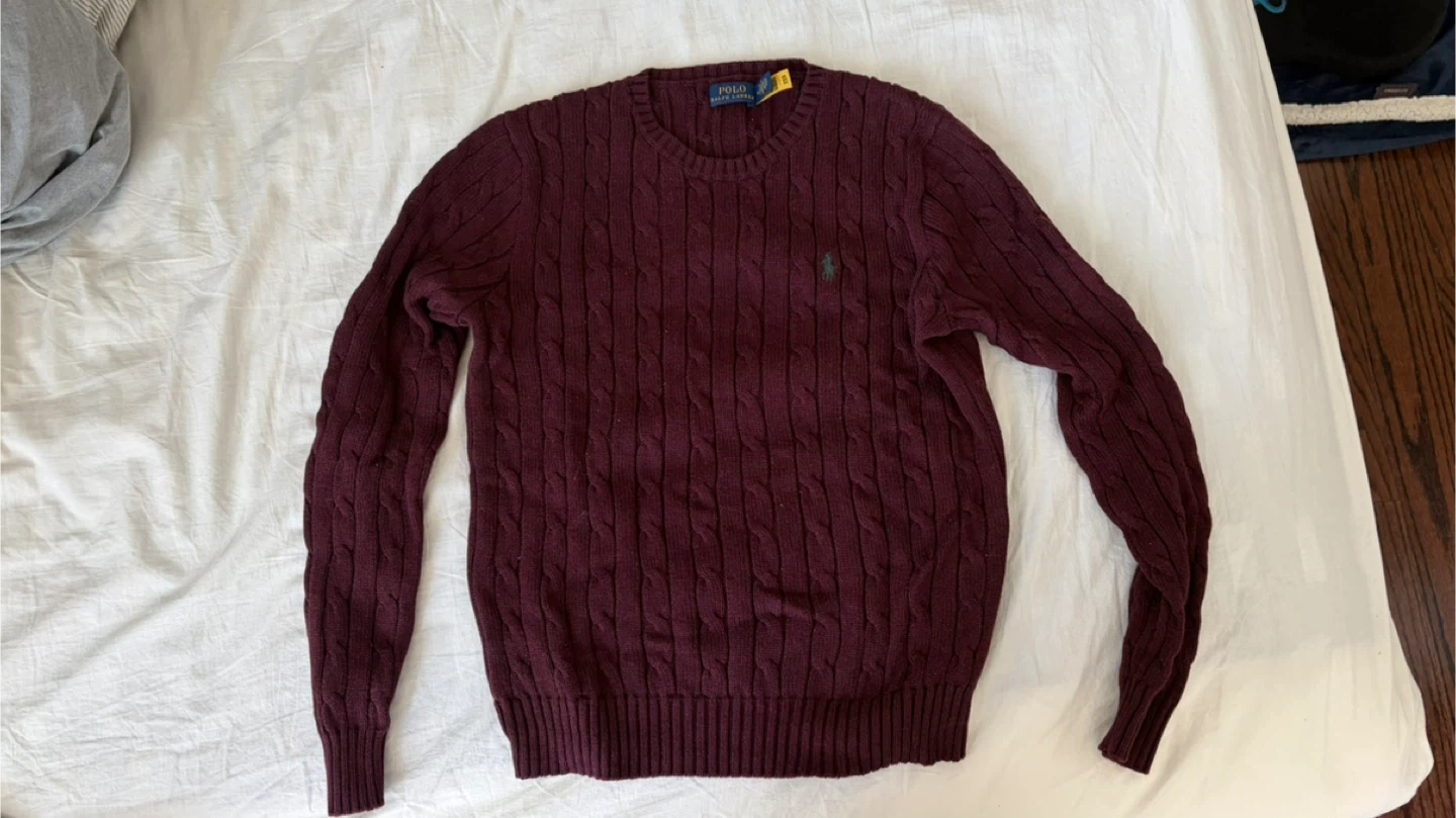 Buy & SellPolo Ralph Lauren Cable Knit Sweater - Burgundy, Size MPolo Ralph Lauren Cable Knit Sweater - Burgundy, Size M$57Size medium for women Purchased from vaughan mills mall Pickup at finch stationConditionLike newSizeMediumBrandPolo ralph laurenWHERE TO MEETFinch stationView MapSELLERverifiedKimFinch1104 reviews0 chats·4 favorites·37 viewsSEND CHAT TO SELLERHi Kim! I’m interested in your listing.Hi Kim! I’m interested in your listing.Get the Karrot app to chatSign In to chat