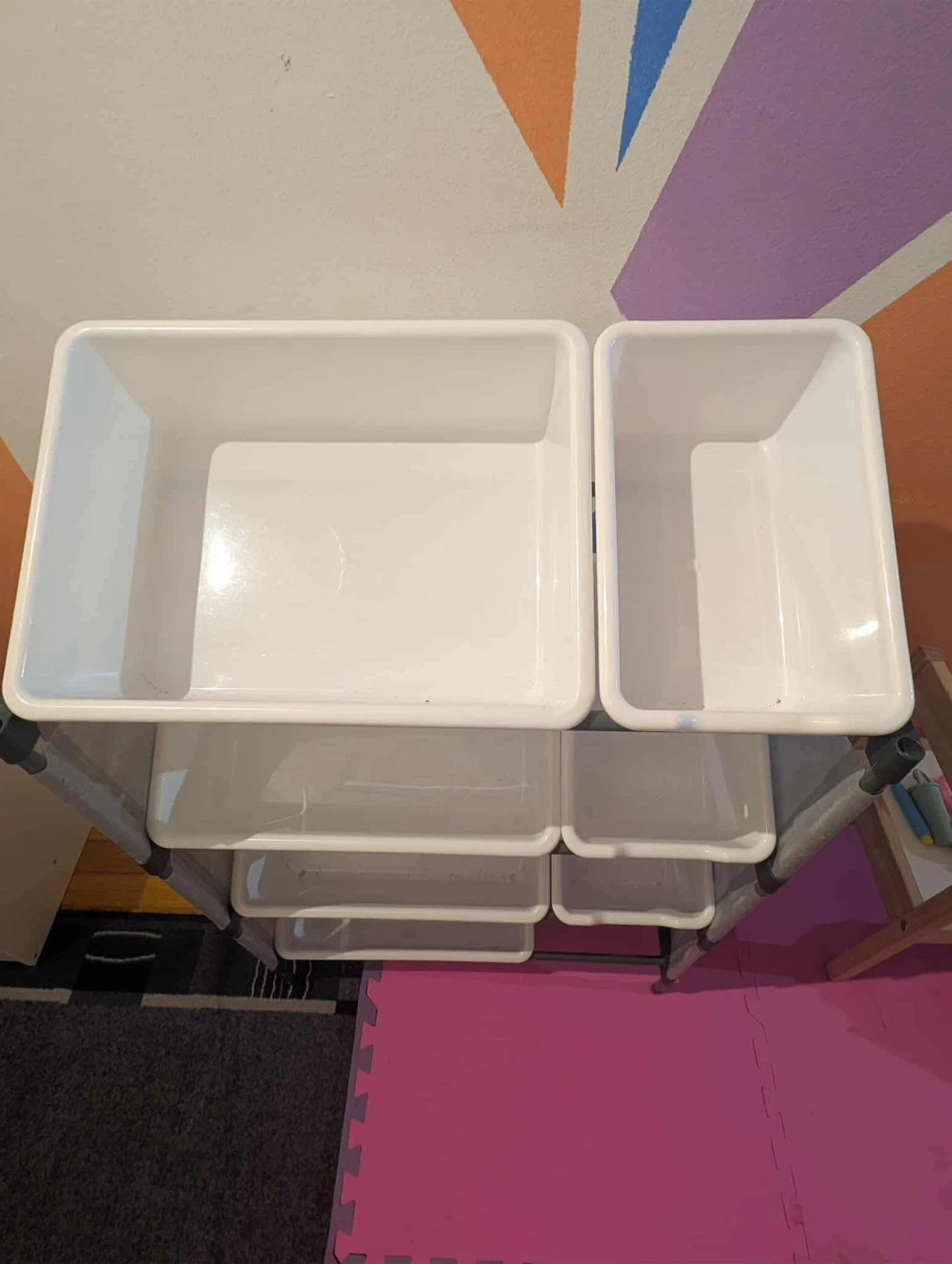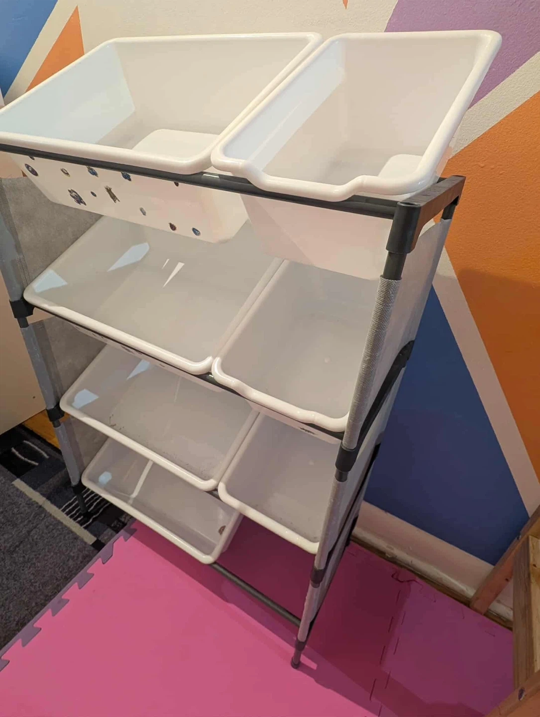 Declutter your little one's play area with this Mainstays Kids 8-Bin Toy Organizer! It features a durable, sturdy metal frame with non-woven material sides. It includes 8 plastic bins in 2 sizes, making it easy to arrange and organize toys. Dimensions are 23.2 inches wide x 11.8 inches deep x 37.6 inches high