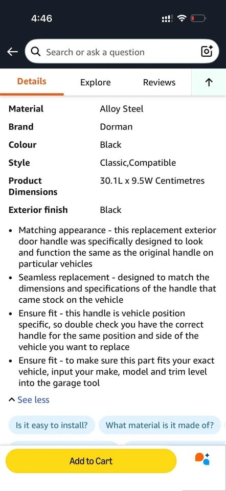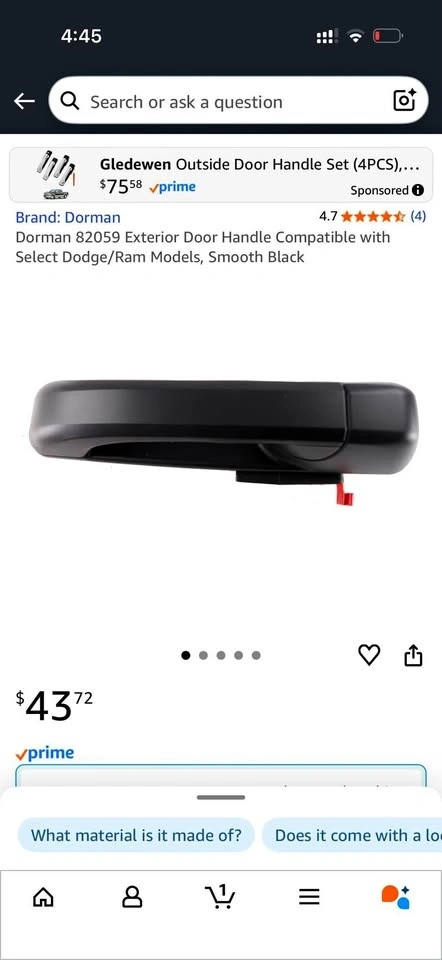 Buy & SellDoorman 92059 Door Handle for Dodge RamDoorman 92059 Door Handle for Dodge Ram$15Black alloy steel door handle.WHERE TO MEETCheck LocationView MapSELLERverifiedCandaceCooksville1032 reviews0 chats·0 favorites·5 viewsSEND CHAT TO SELLERHi Candace! I’m interested in your listing.Hi Candace! I’m interested in your listing.Get the Karrot app to chatSign In to chat
