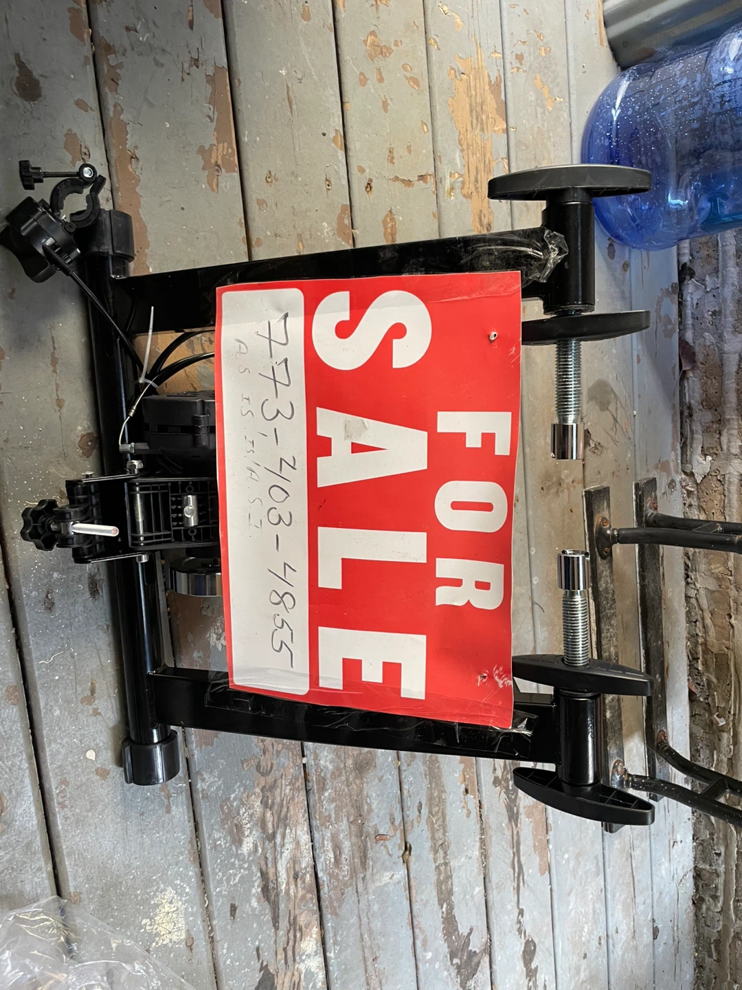 This is a black metal bicycle trainer stand. It's made of durable metal and has adjustable clamps. Great for indoor cycling training!