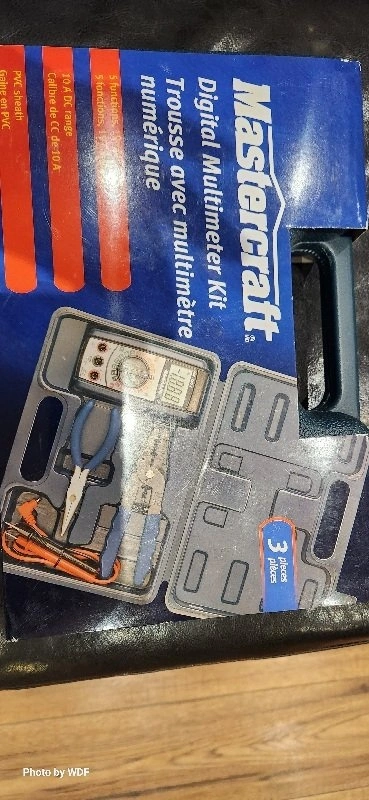 This Mastercraft Digital Multimeter Kit is BNIB NEW and includes a multimeter, test leads, and other accessories for electrical testing and troubleshooting. This comprehensive kit is perfect for anyone looking to get started in electronics or for those who need a reliable multimeter for their work.