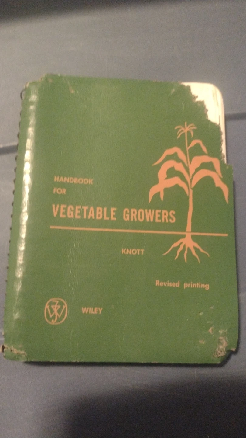 This handbook brings together a wealth of information for vegetable growers. Cover is damaged. It covers topics like variety characteristics and disease-resistant varieties. Revised printing.1957.🥇