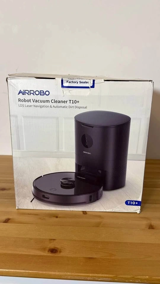 New Airrobo T10+ robot vacuum with self-emptying base. Powerful suction, smart LiDAR mapping, and vacuum + mop function in one device.