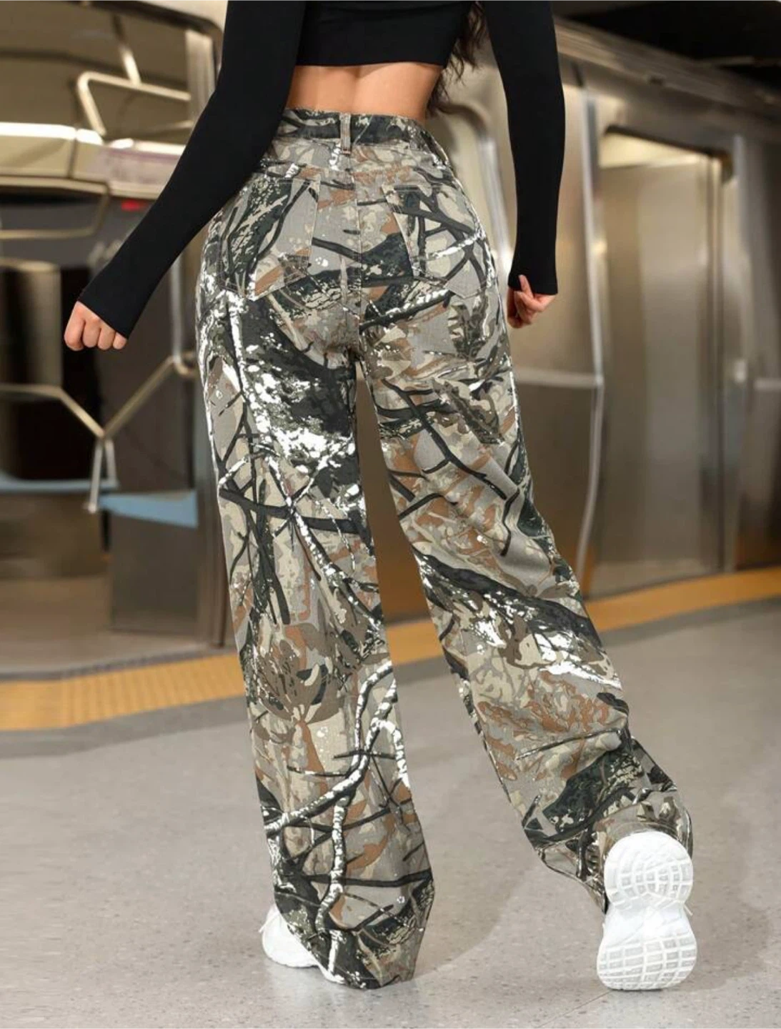 Camo Print Wide Leg Jeans
