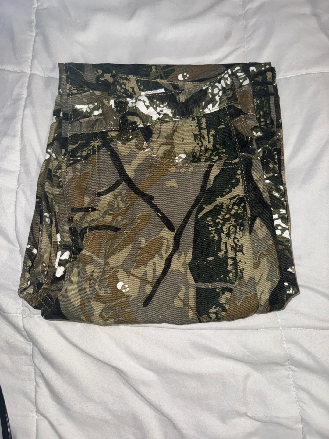 Selling these camo print wide leg jeans! They're in great condition and feature a unique camouflage pattern. Never worn.