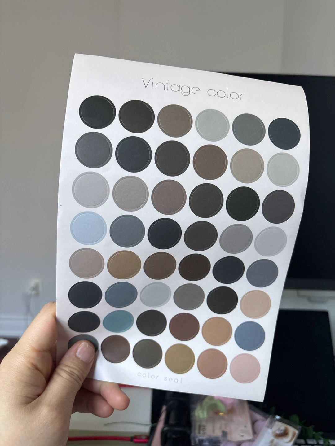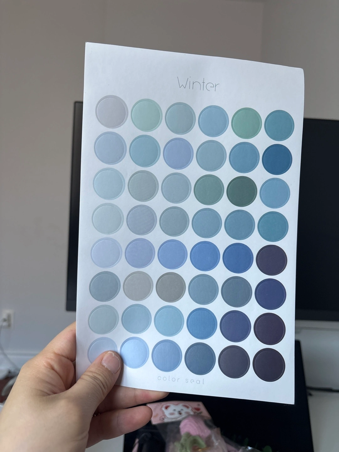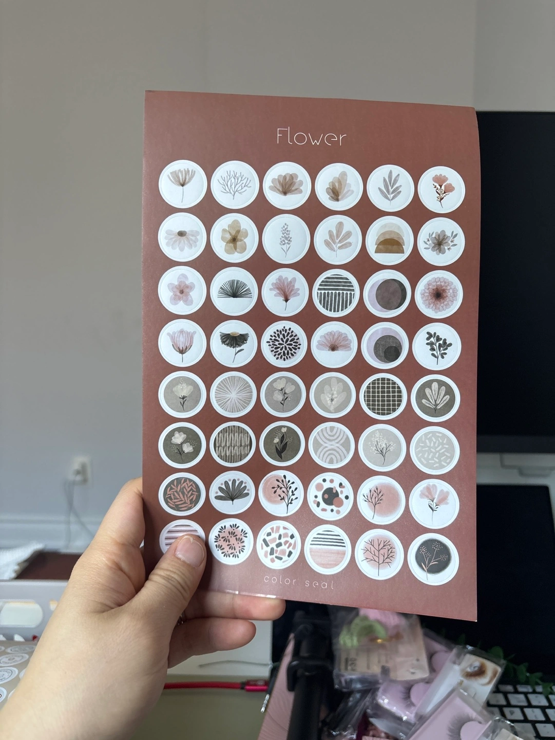 Set of decorative sticker sheets. Multiple designs available: Postmark, Winter, Vintage Colour, Marble, and others. Each sheet features numerous round stickers. Ideal for journaling, scrapbooking, or other crafting projects.