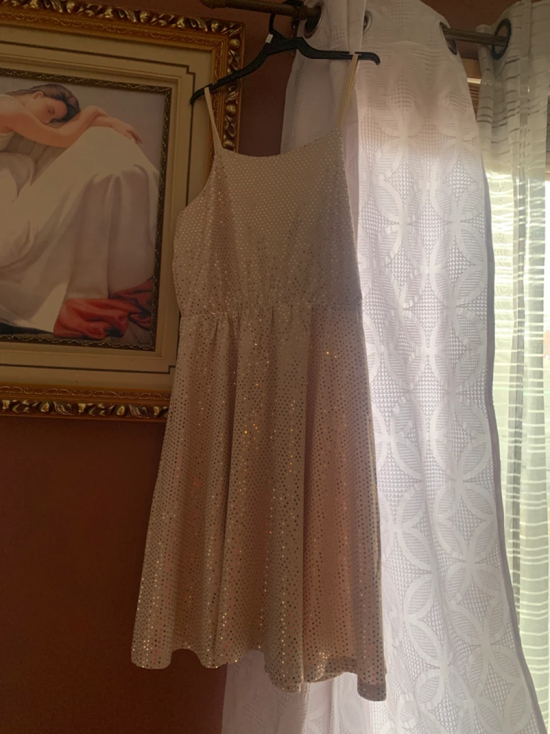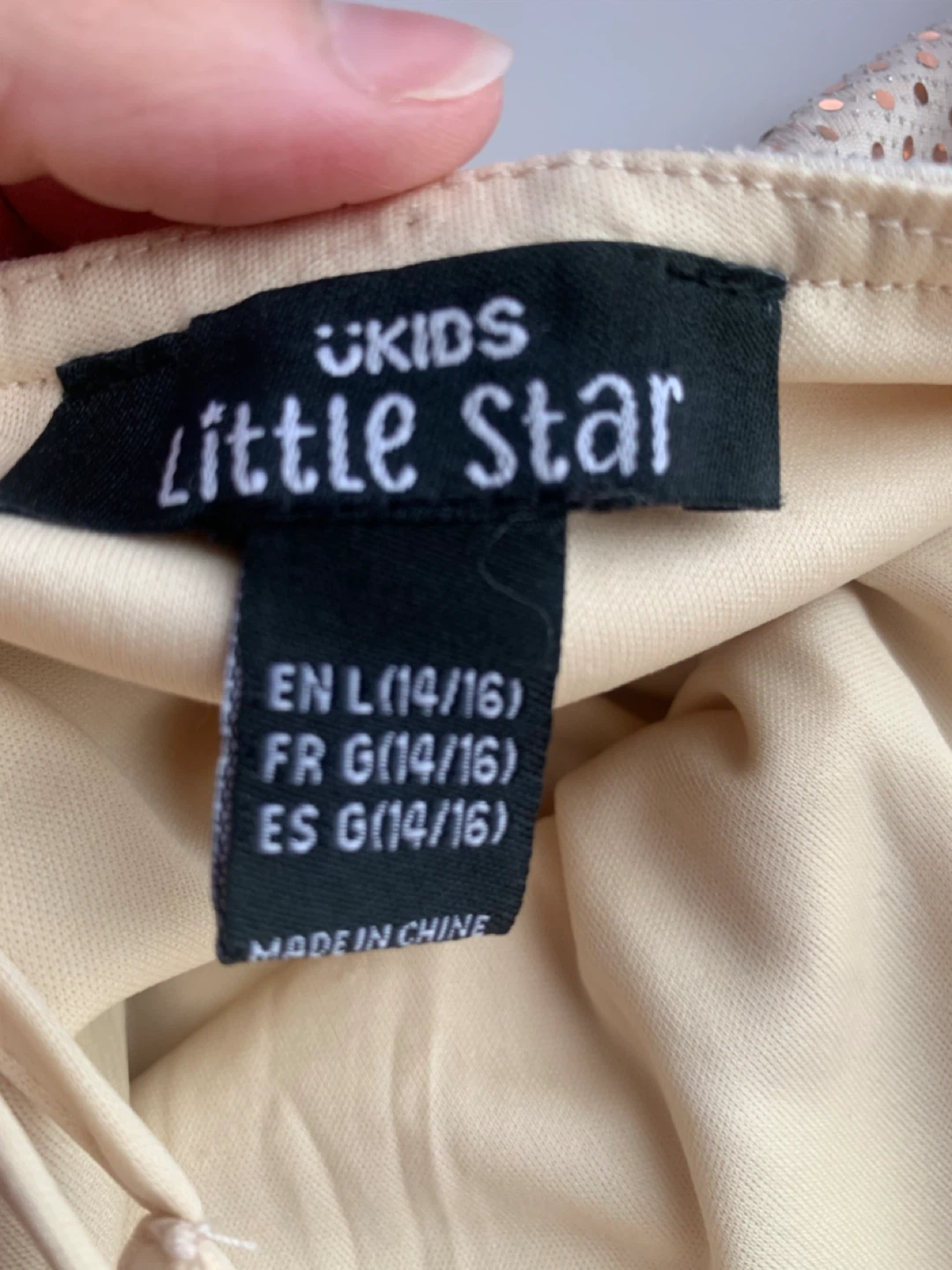 This Little Star dress features a sparkly design. It's a size L, fitting 14-16 years.