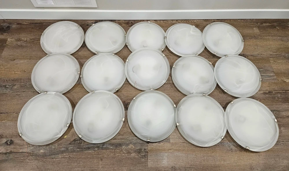 Lot of 15 Frosted Glass Flush Mount Ceiling Lights. 12 inch