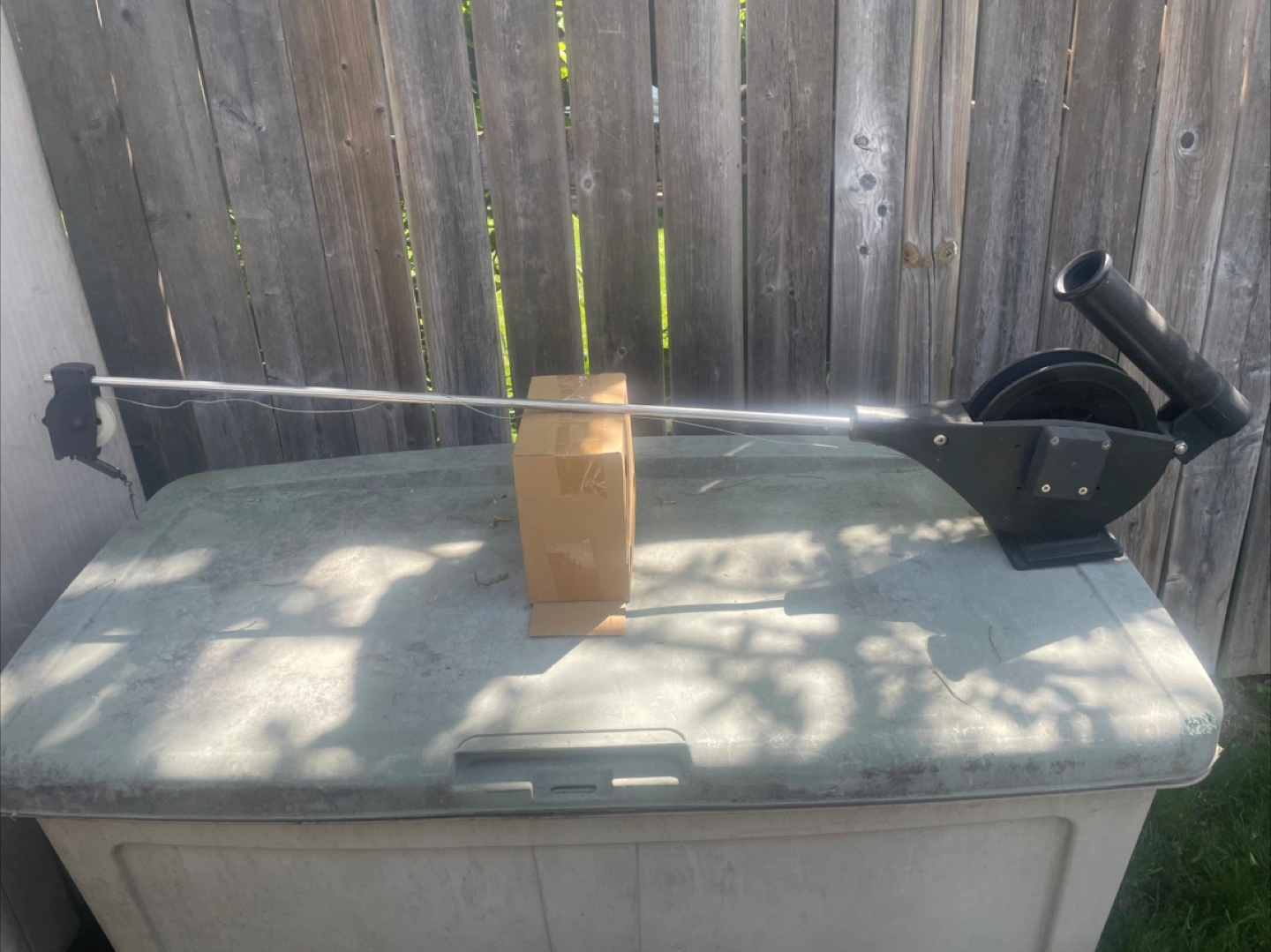 Fishing down-rigger to get you lure at the same depth where the fish are. 34” boom with cable depth counter, goes to 300 feet++ do not have the weight. It has an adjustable base to secure to the gunwale of your boat (just the base cost $110.00).