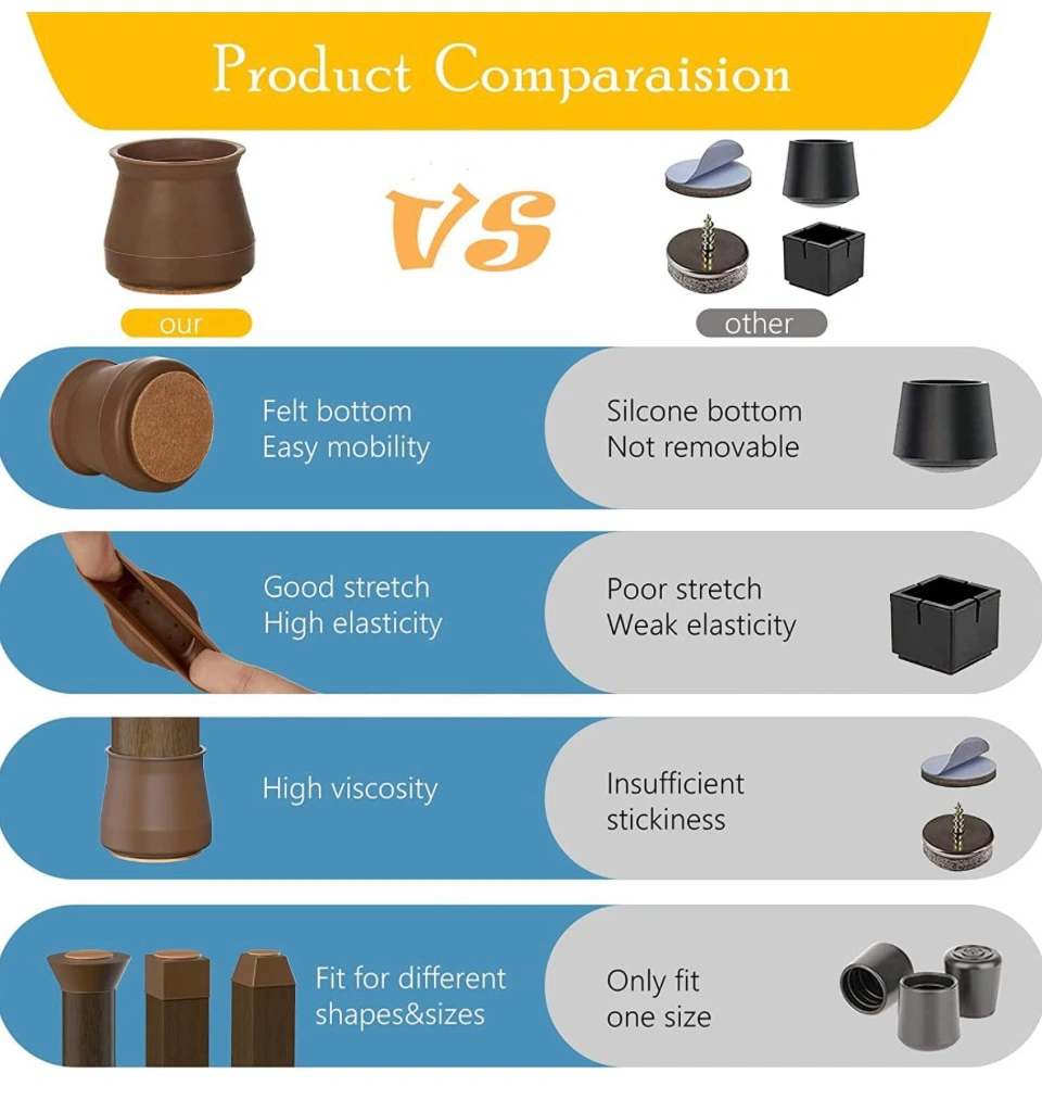 Chair Leg Floor Protectors, Adoric Life 16PCS Chair Leg Pads for Hardwood Floors, Upgraded Silicone Felt Bottom Furniture Pads, Free Moving Non Slip Chair Leg Covers Anti Scratch and Noise