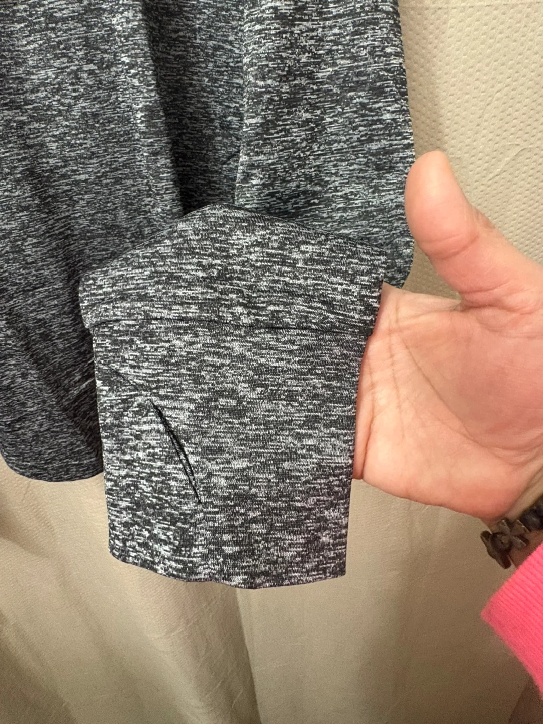 This Kuyerton training long sleeve shirt is in a heathered grey. It's a size XL with thumbholes for a secure fit. Slim fit design for athletic activity.