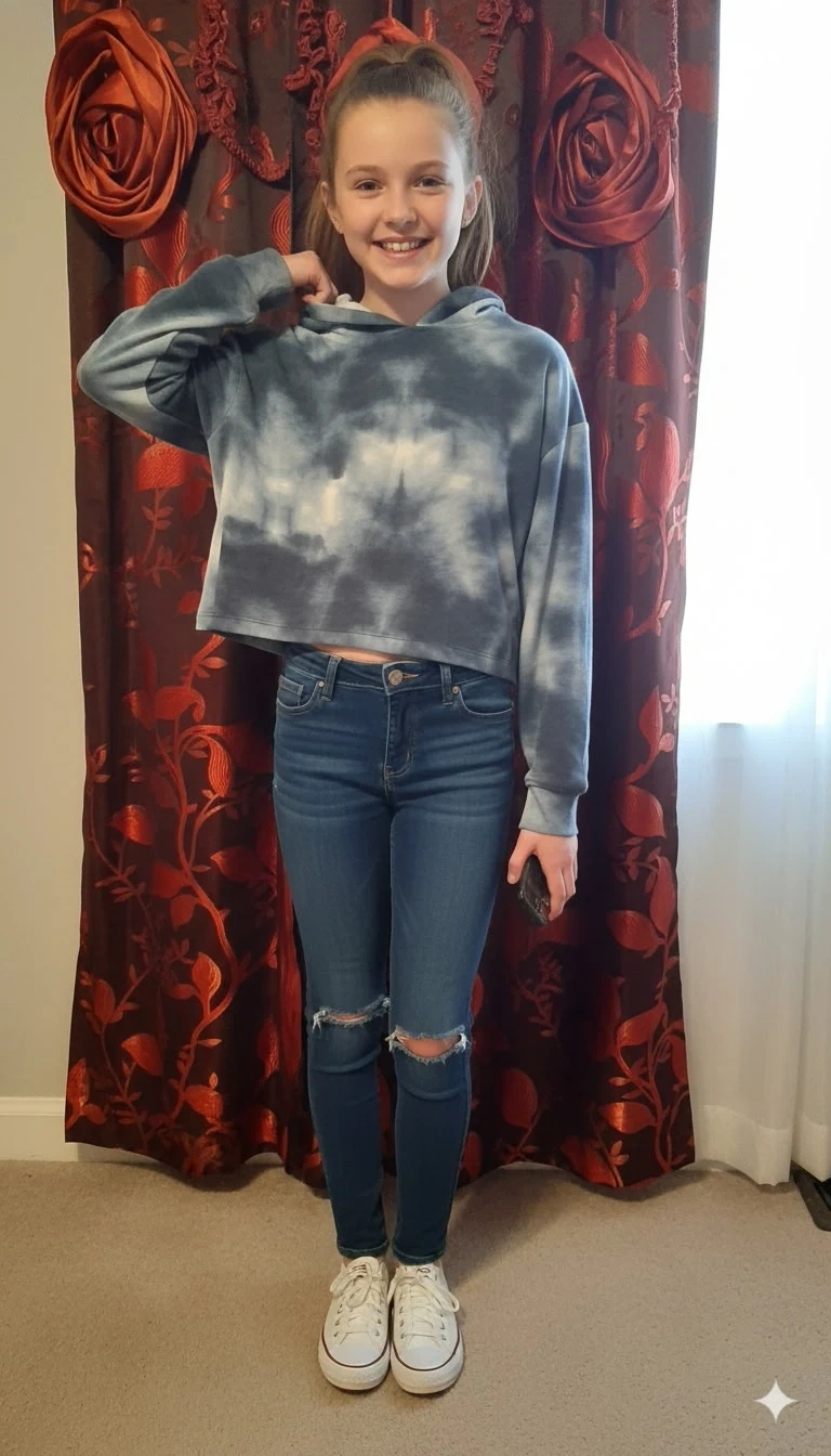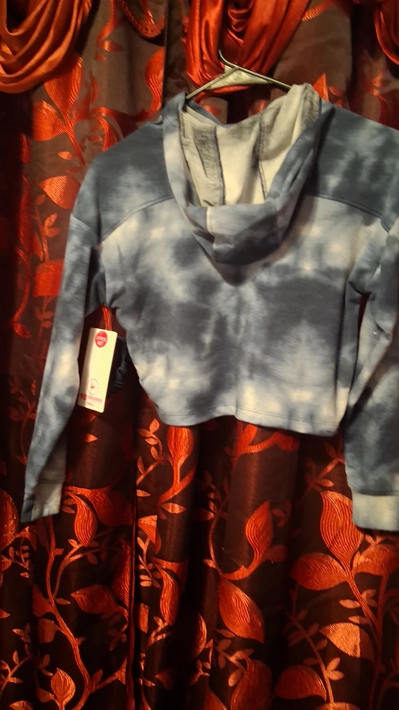 This cropped hoodie features a cool tie-dye pattern. It's made with a soft blend of 60% cotton and 40% polyester. Great for casual wear!