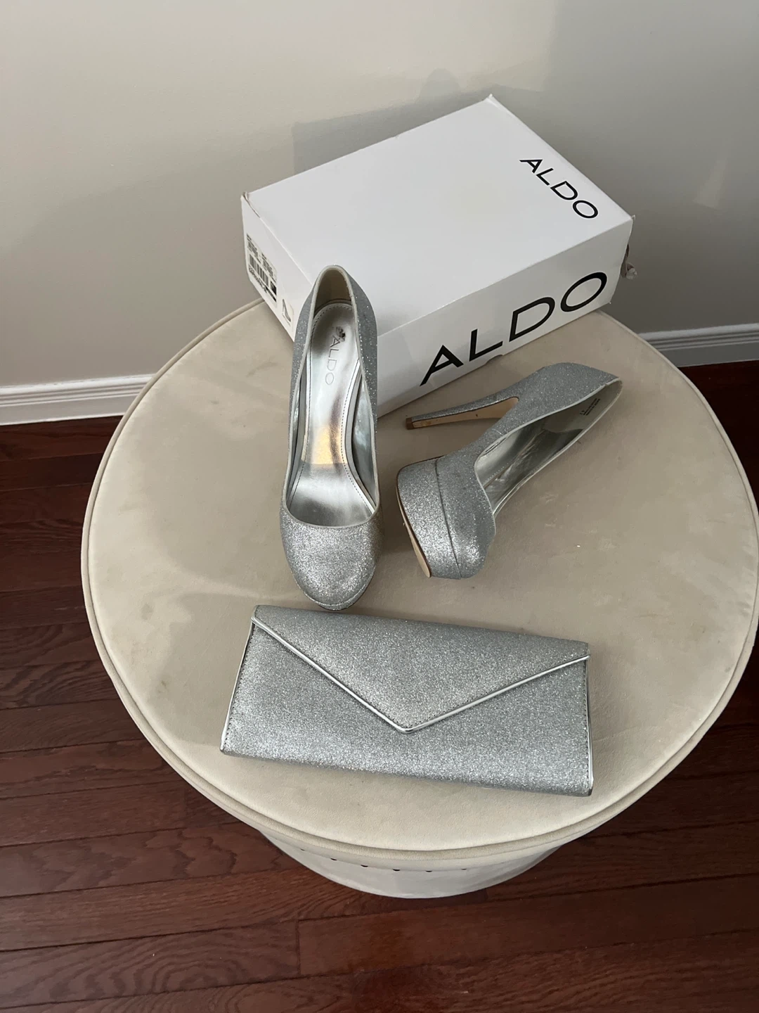 ALDO Silver Glitter Heels and Clutch Set