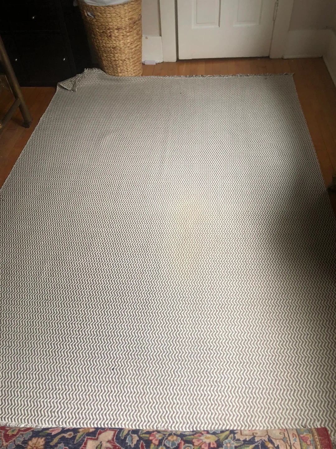 no stains but does need a good wash - can be done in an industrial machine at the laundromat.