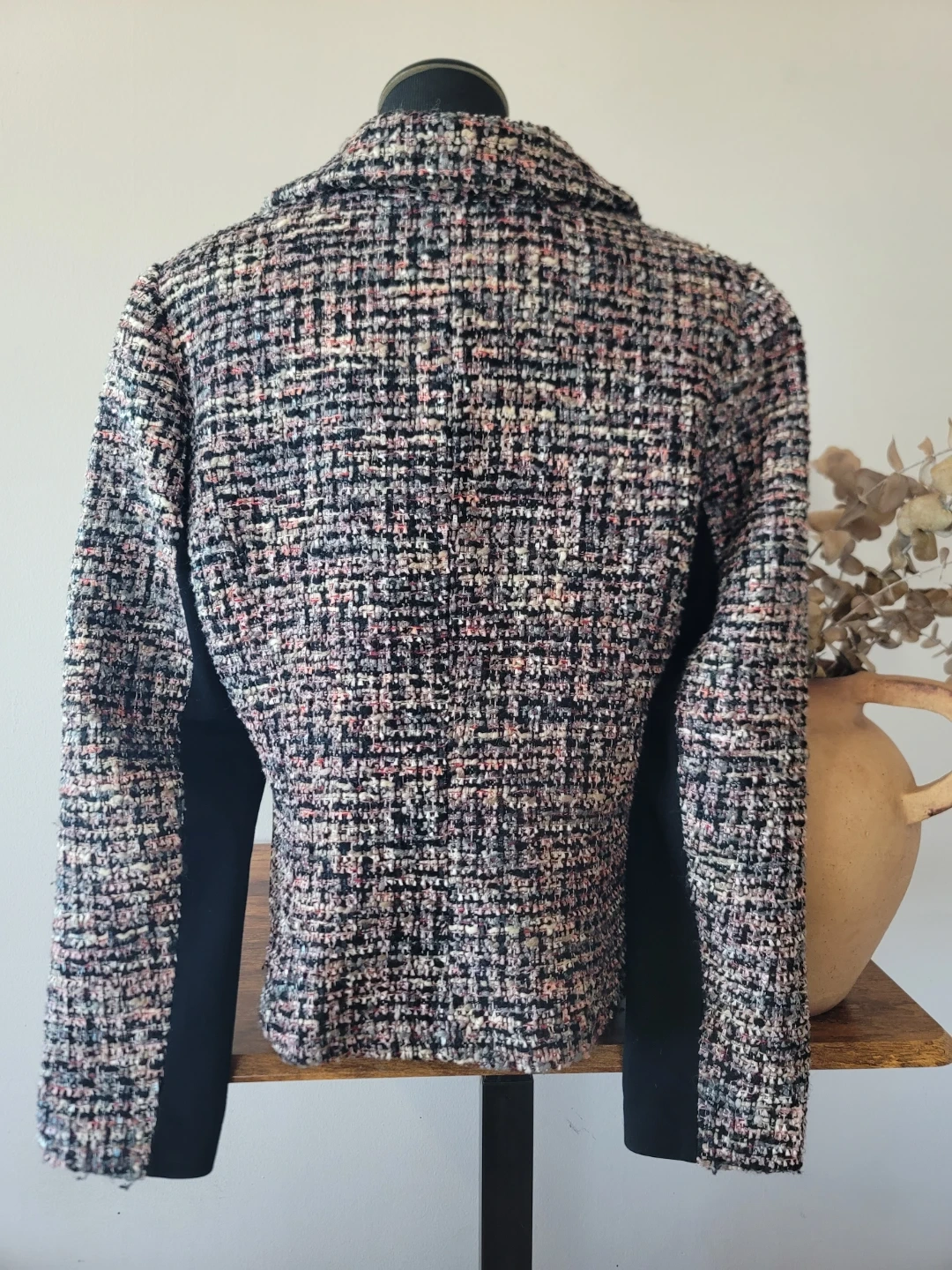 Colorful Tweed Moto Zip Jacket Blazer Office Sz 14 Spring Layers