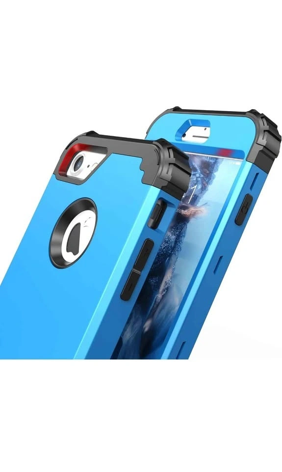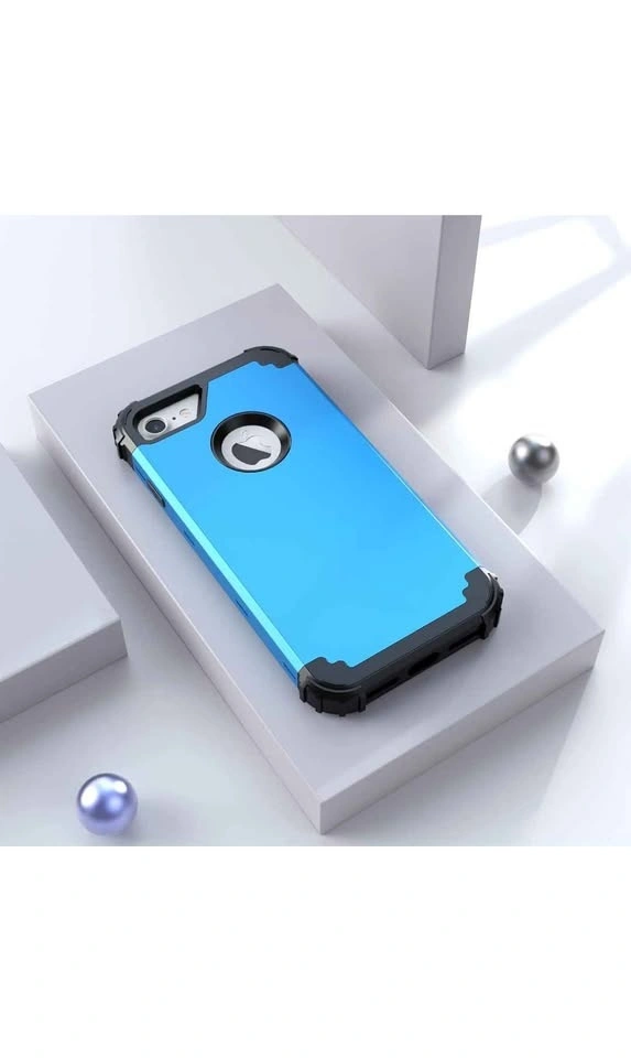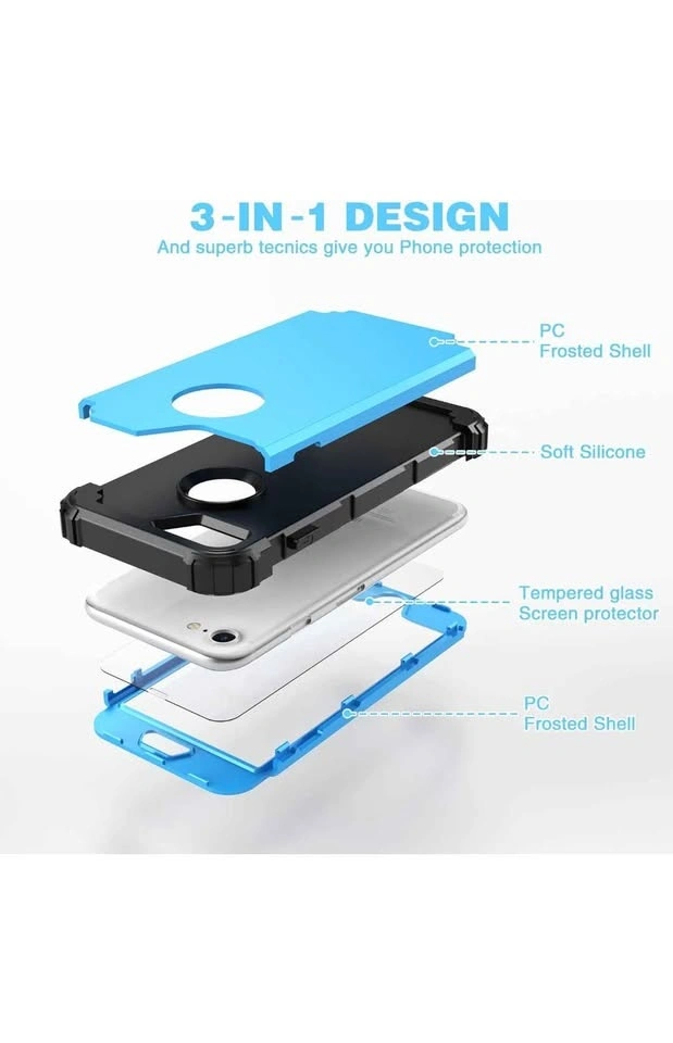 Includes a tempered glass screen protector. This is a 3-in-1 shock absorption case for iPhone 8 or iPhone 7. It features a sturdy heavy-duty hard PC cover with a soft silicone bumper for full body protection. Color: Sky Blue.