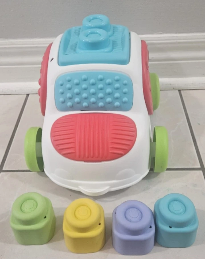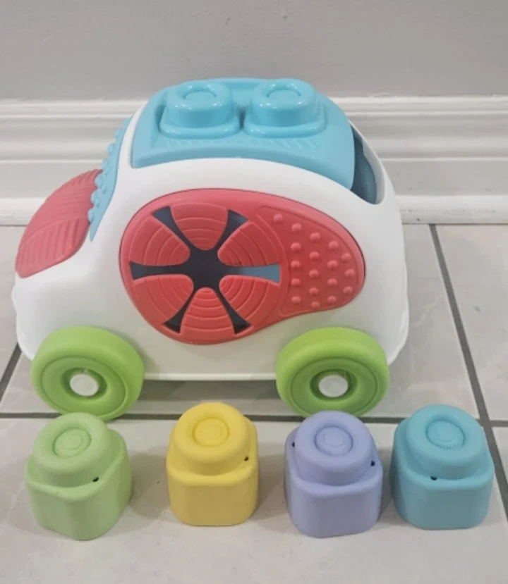 This colourful activity car comes with four shape blocks for little ones to sort and stack. It's great for developing fine motor skills. The car has an openable compartment for easy access.Barely used
