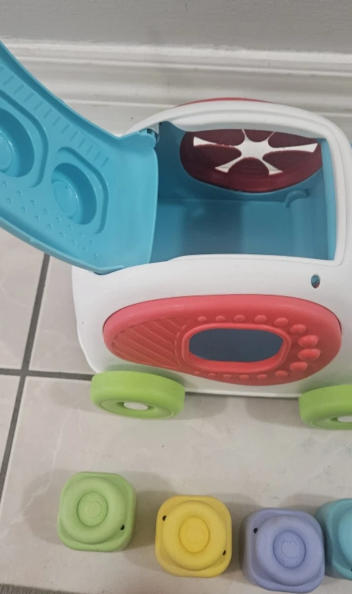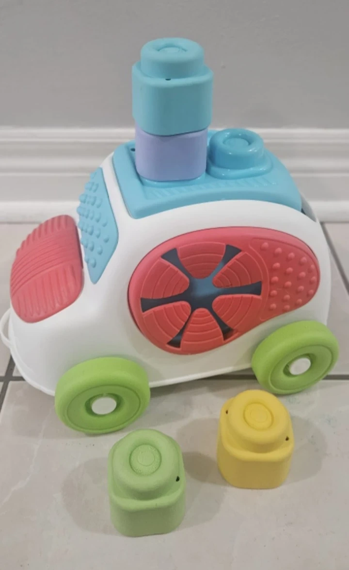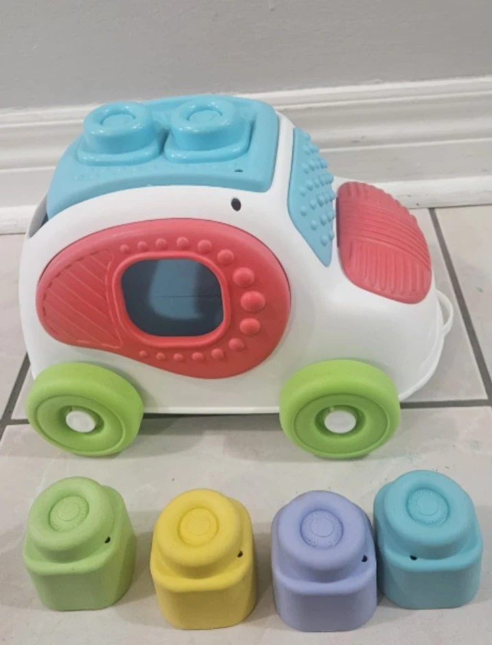 This colourful activity car comes with four shape blocks for little ones to sort and stack. It's great for developing fine motor skills. The car has an openable compartment for easy access.Barely used