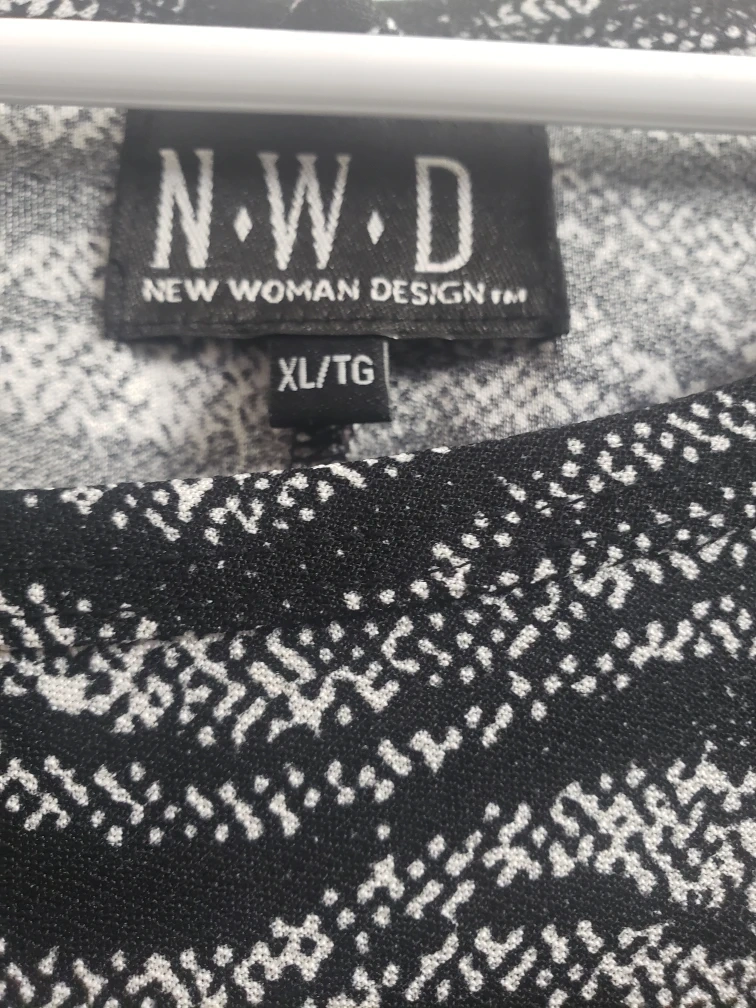 This NWD top features a wavy black and silver patterned design. It's a size XL/TG. Perfect for adding a touch of sparkle to your outfit!