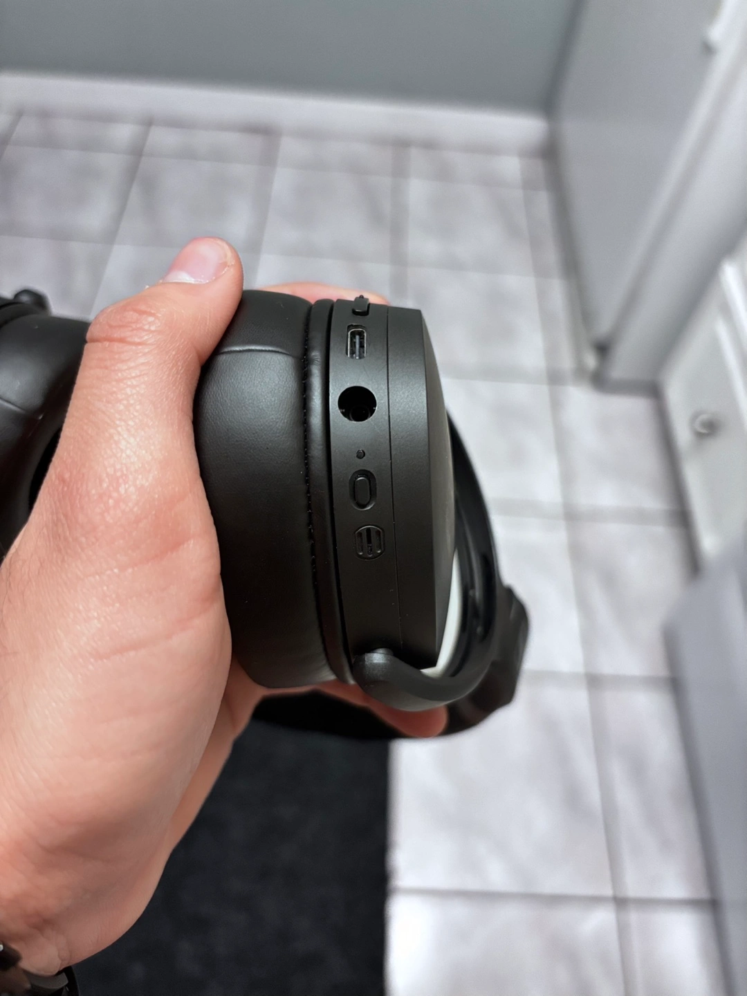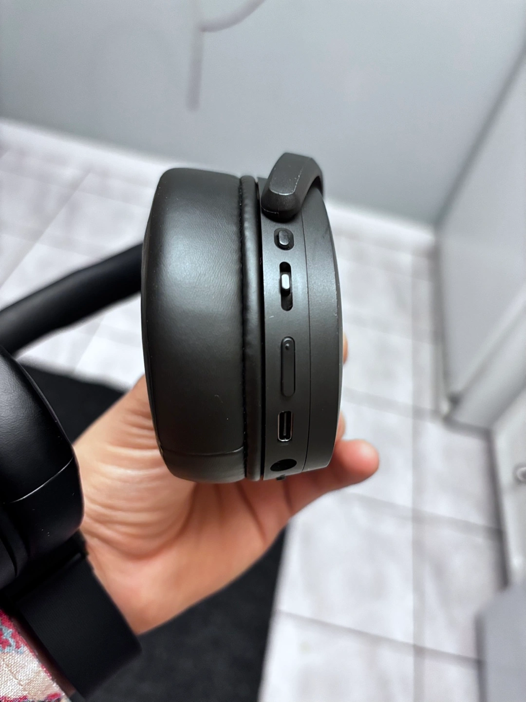 Wireless over-ear headphones. Black colour. Features Bluetooth connectivity and buttons for volume and playback control.