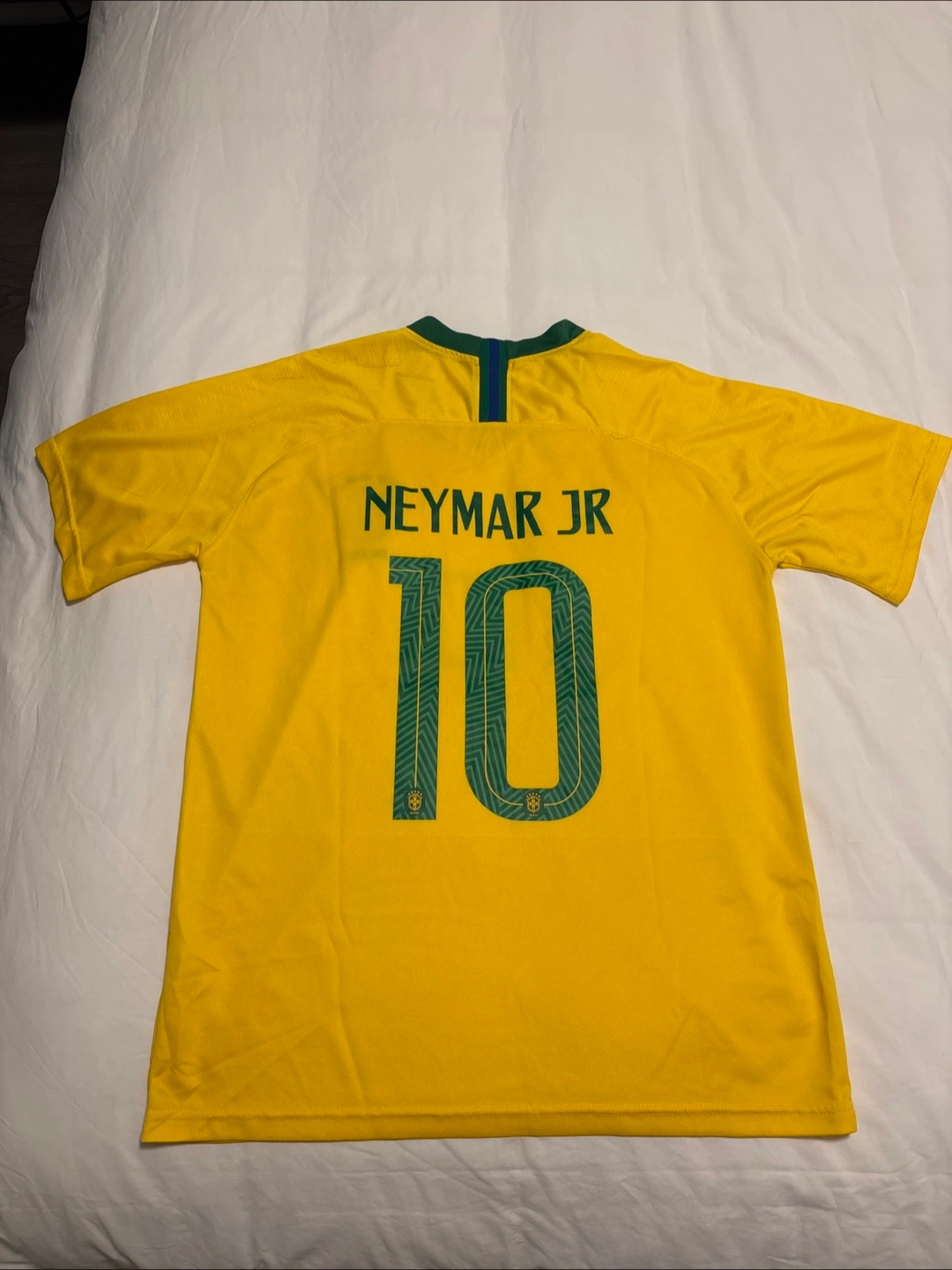 Replica Brazil national team soccer jersey. Features Neymar Jr's name and number 10 on the back. Adult size Large
