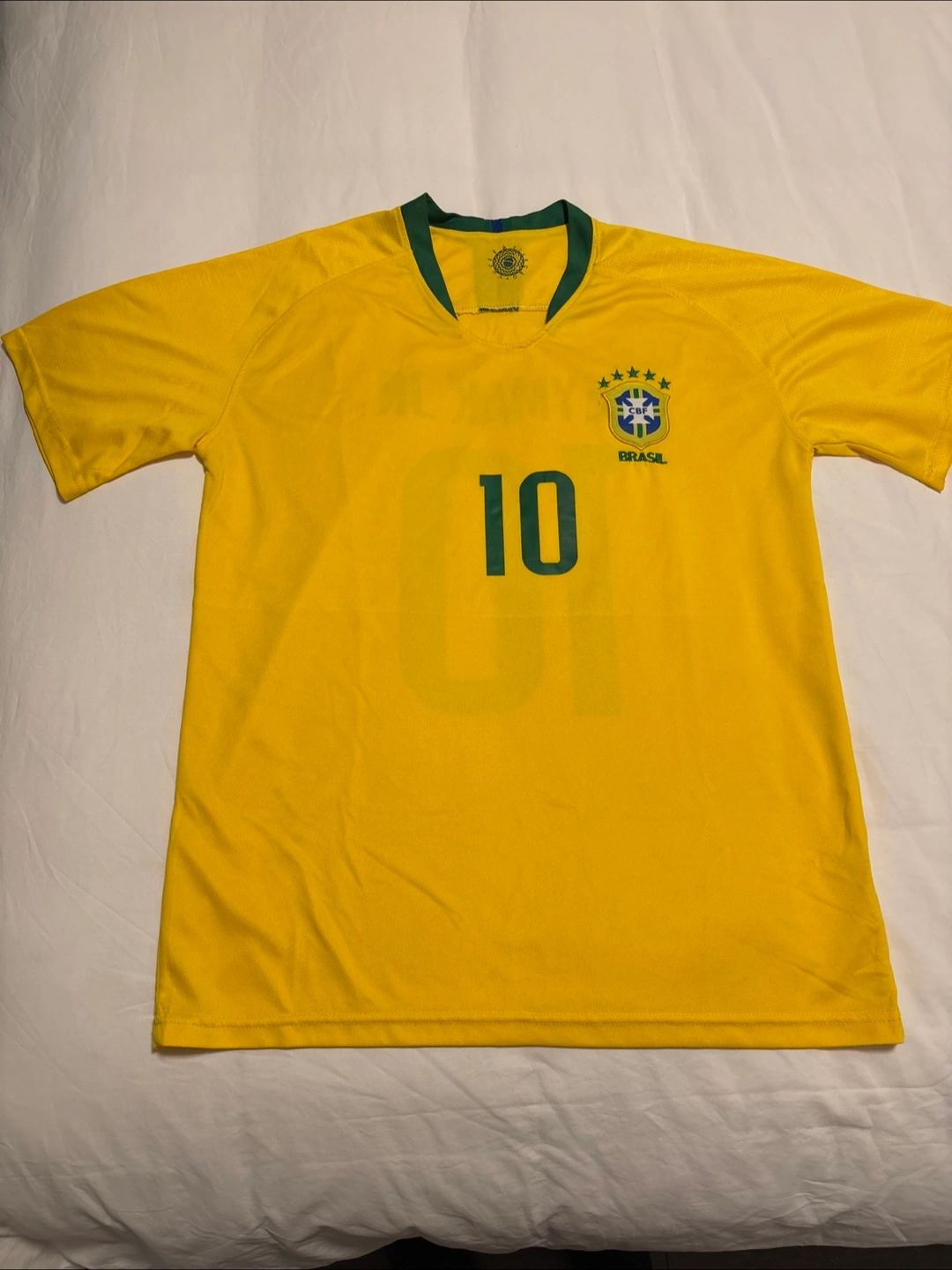 Replica Brazil national team soccer jersey. Features Neymar Jr's name and number 10 on the back. Adult size Large