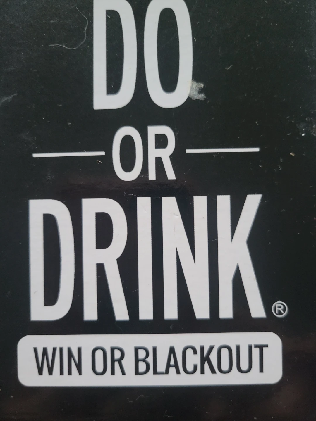 Selling a Do or Drink card game! It's the Win or Blackout edition. The game includes 350 cards total, with 175 black cards and 175 white cards. Get ready for some fun challenges!