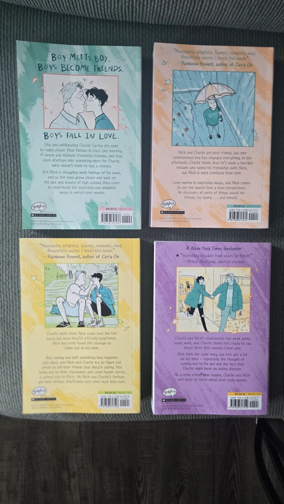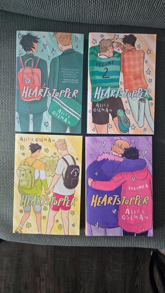 Selling Heartstopper graphic novel series by Alice Oseman! This set includes volumes 1-4, perfect for any fan of the web comic series, TV series on Netflix, or anyone looking for a heartwarming LGBTQ+ read.