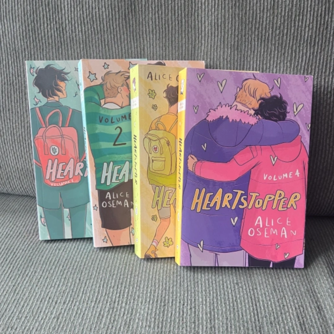 Selling Heartstopper graphic novel series by Alice Oseman! This set includes volumes 1-4, perfect for any fan of the web comic series, TV series on Netflix, or anyone looking for a heartwarming LGBTQ+ read.