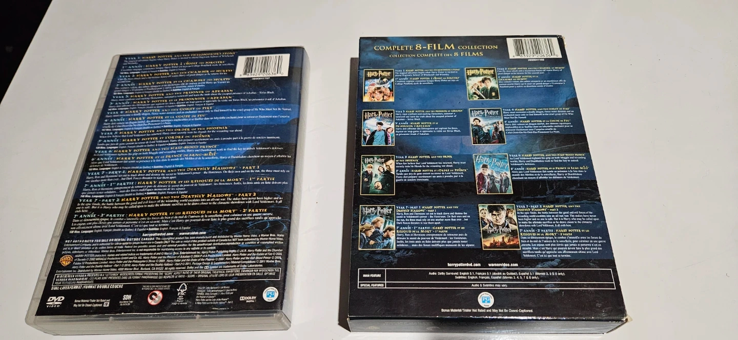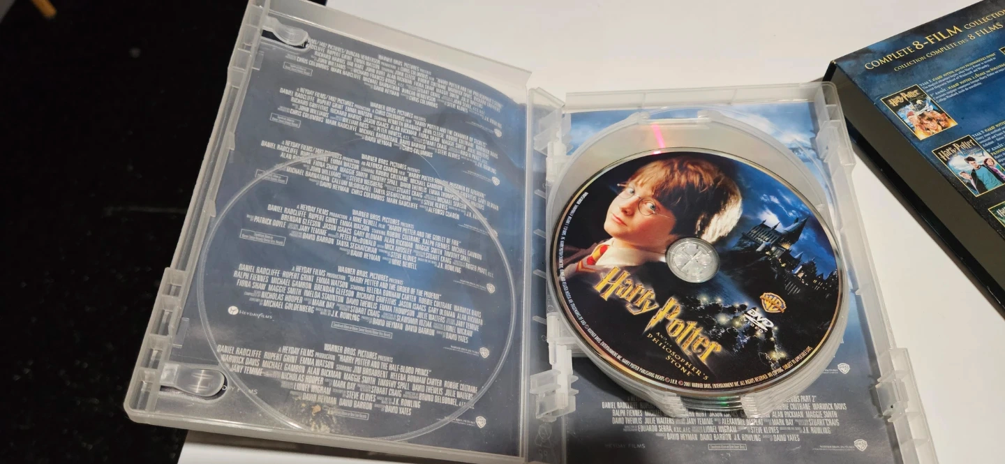 This is the complete 8-film collection of Harry Potter on DVD. It includes all eight movies in the series. Good condition, no scratches. Pick up or meet in my area only