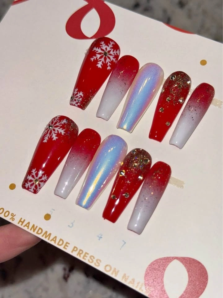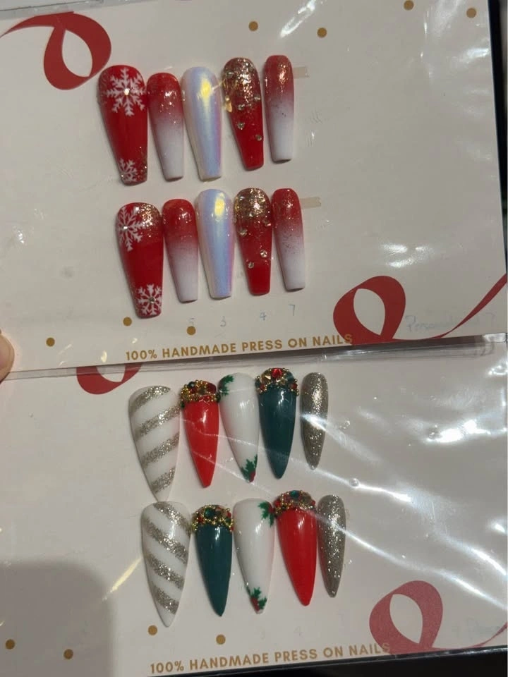 Hand painted luxury press on nails. Brand new. Comes with these 10 nails shown, and nail stickers to put the press-ons on your nails. Can file the sides to fit your nails if needed. I have two sets in different styles (see last photo).