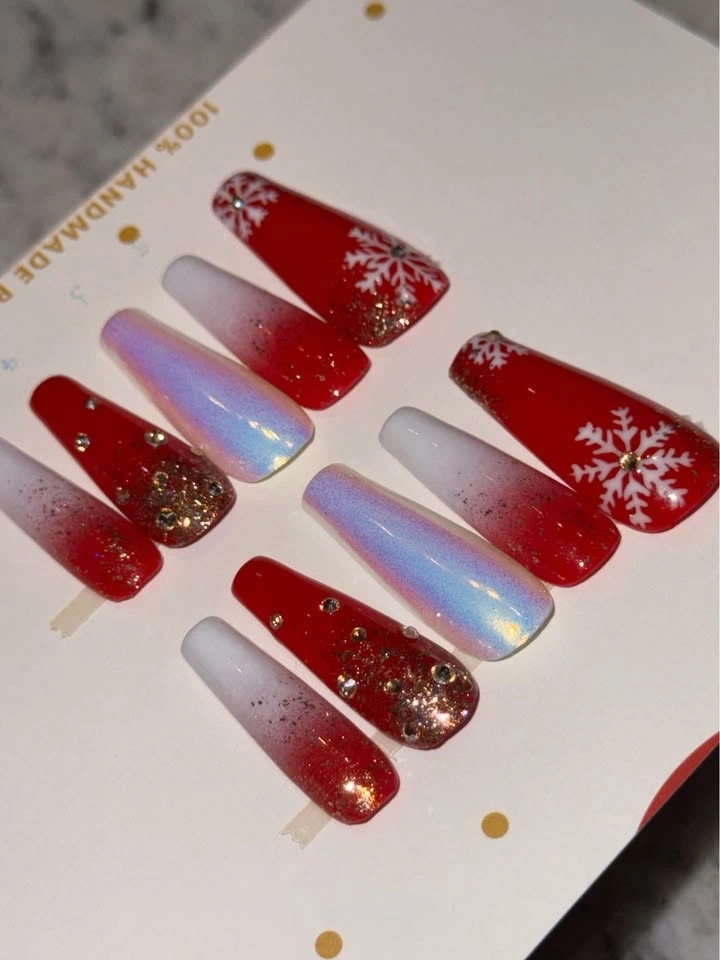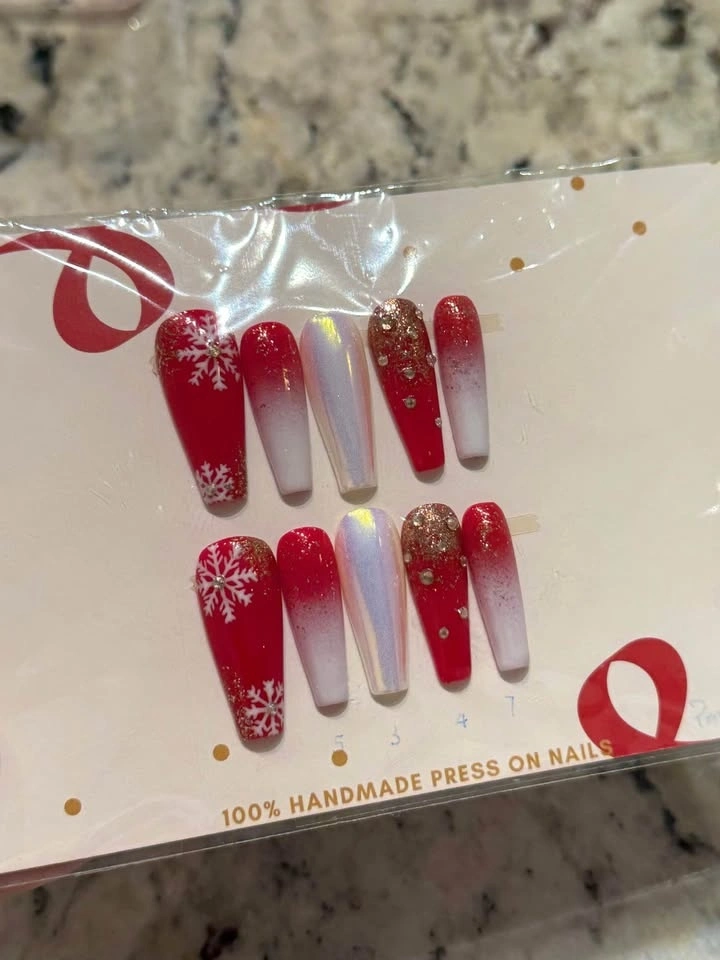 Hand painted luxury press on nails. Brand new. Comes with these 10 nails shown, and nail stickers to put the press-ons on your nails. Can file the sides to fit your nails if needed. I have two sets in different styles (see last photo).