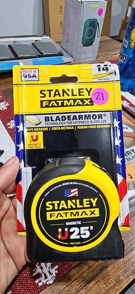 Stanley FatMax BladeArmor tape measure with a 25-foot length.