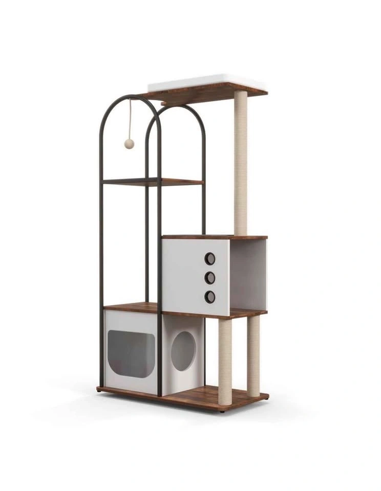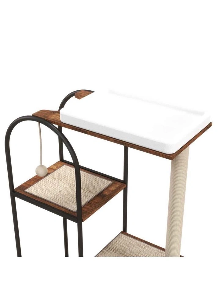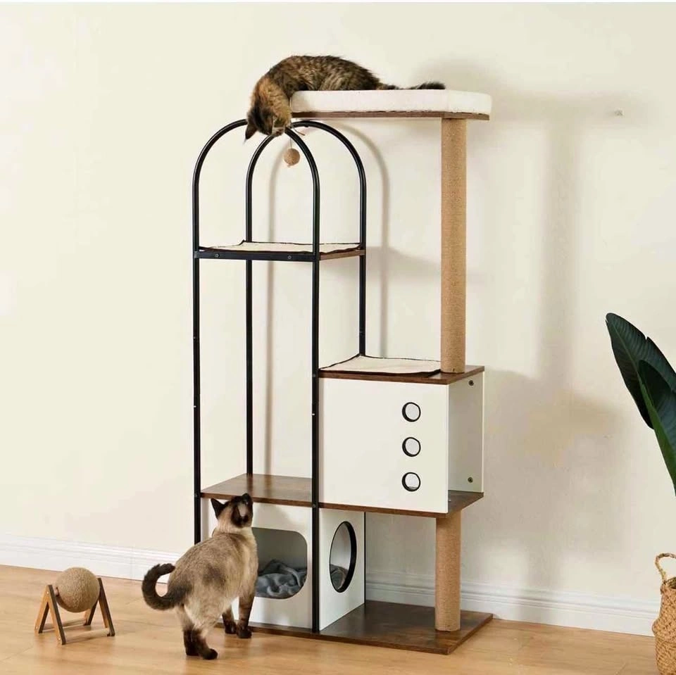 Brand new cat tree, still in the box and unopened! Asking $50. Available for pickup in the Berwyn/Cicero area between 10 am and 7 pm. This versatile cat condo features a padded perch, cave, and scratch post enclosure, perfect for your feline friend. It has a rustic brown and white finish and a modern design that will add style to your space. The semi-enclosed cupboards offer a private, air-circulated hideaway. Made from high-quality natural particle board, its stable rectangular design ensures it won't shake or tilt, even with multiple levels of jumping. With five levels, it's ideal for multi-cat households, giving each cat their own activity platform. The overall dimensions are 60" H x 31.5" W x 15.5" D, and it weighs 47.44 pounds. The cat tree includes built-in scratching surfaces like sisal-wrapped posts to help protect your furniture. The top features a soft bed for comfortable napping. The semi-enclosed cabinets allow for easy observation of your cat while maintaining air circulation to prevent odors. The design is also easy to clean.